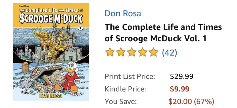 Amazon is currently selling The Complete Life and Times of Scrooge McDuck Vol. 1 for Kindle/Comixology on sale for 67% off of its retail price.