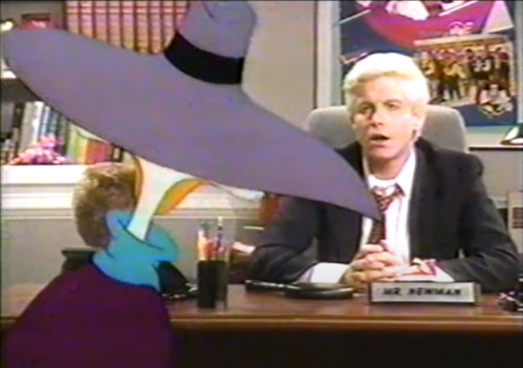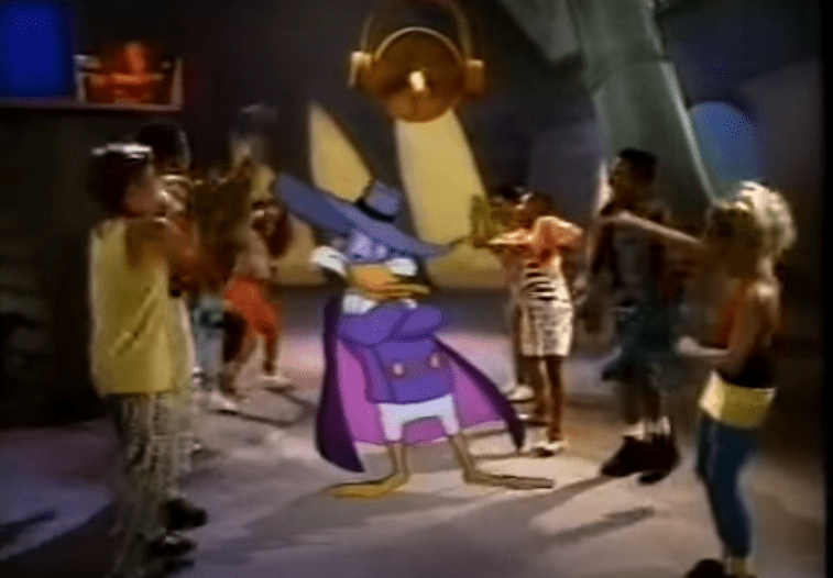 As I mentioned before, after the Darkwing Duck premiere, Disney paired it with The Mickey Mouse Club Back to School special. Since at the time, The Disney Channel was a premium cable channel, (meaning you had to pay for it separately like HBO or Showtime) this introduced a lot of people to the show, including myself (at the time, I didn’t have cable at all). Now to be honest, I didn’t care for this special, and pretty sure I turned it off after the first commercial break. But, before the special started, Darkwing comes to the office of the host of the Mickey Mouse Club and demands them to air his music video before their special.