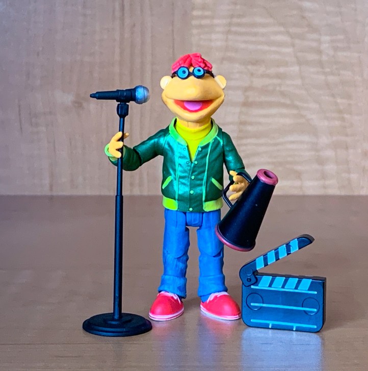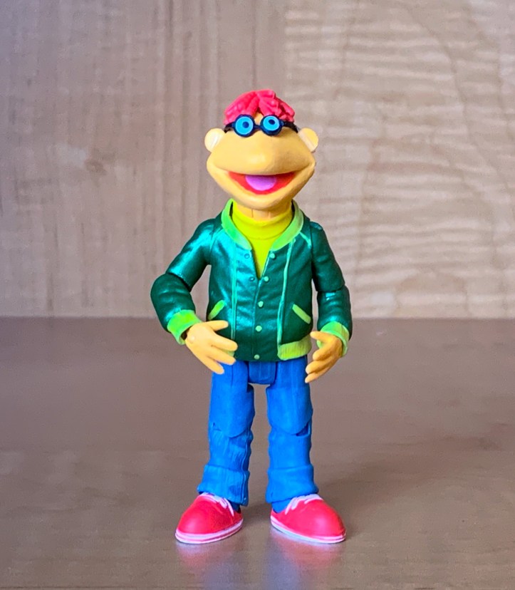 Not only does Scooter’s uncle own the Muppet Theater, but Scooter also has fourteen points of articulation. He is the perfect “gofer” boy on Team Muppets to make sure that all shows run perfectly. Scooter’s glasses are detachable. There is a clear rubber band that holds his glasses on his face. I recommend leaving this rubber band on because it is almost unnoticeable, and it will prevent you from losing the glasses.