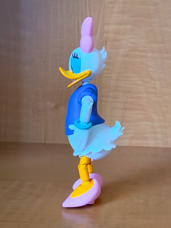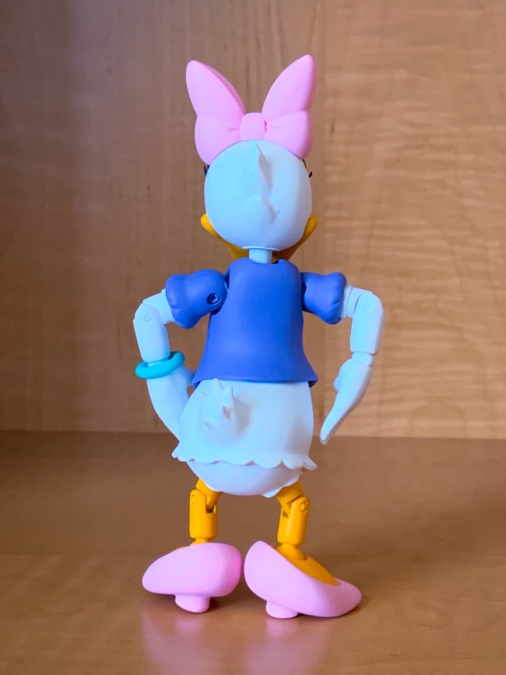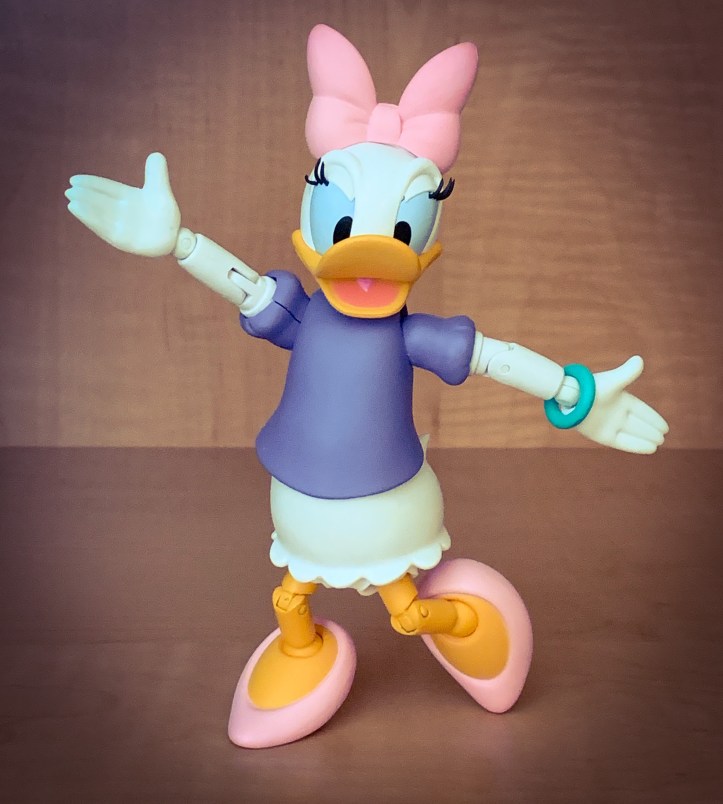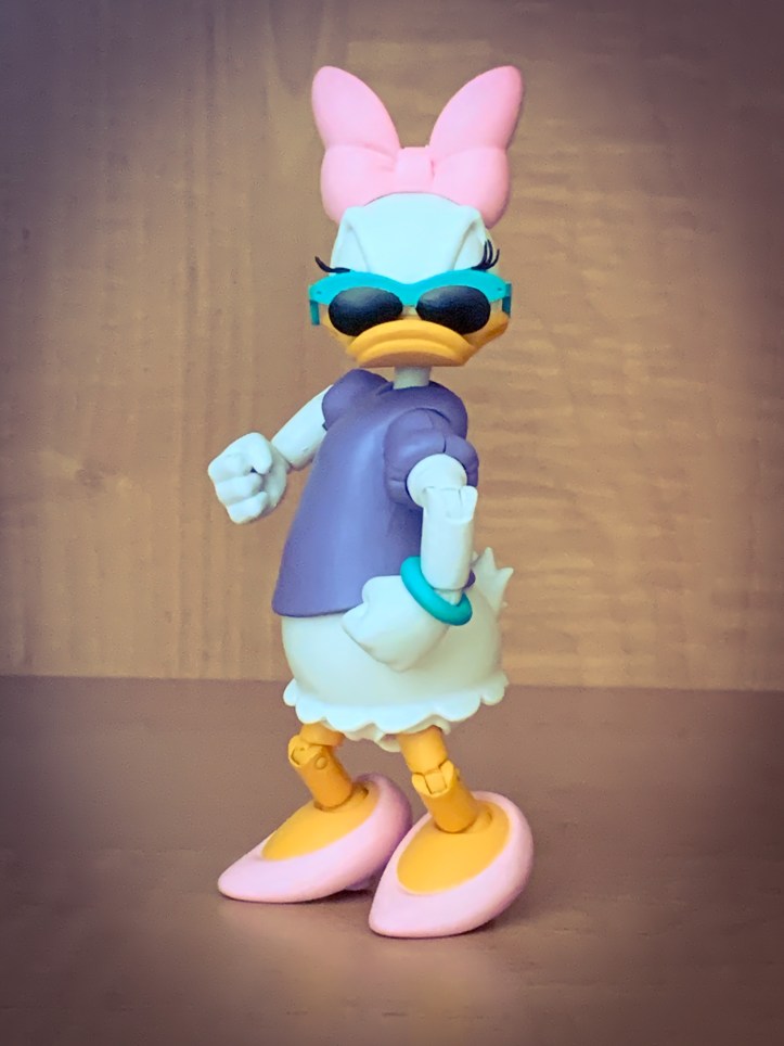 The fashion forward diva, Daisy Duck, has 22 points of articulation. She is very well balanced with standing on the heels of her stylish shoes.