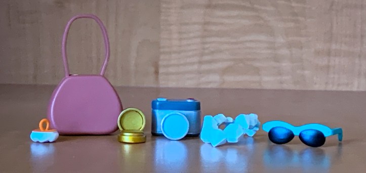 This Daisy figure release comes loaded with fashionable accessories. Accessories include a powder pad, purse, compact mirror, camera, pearl necklace, and sunglasses.