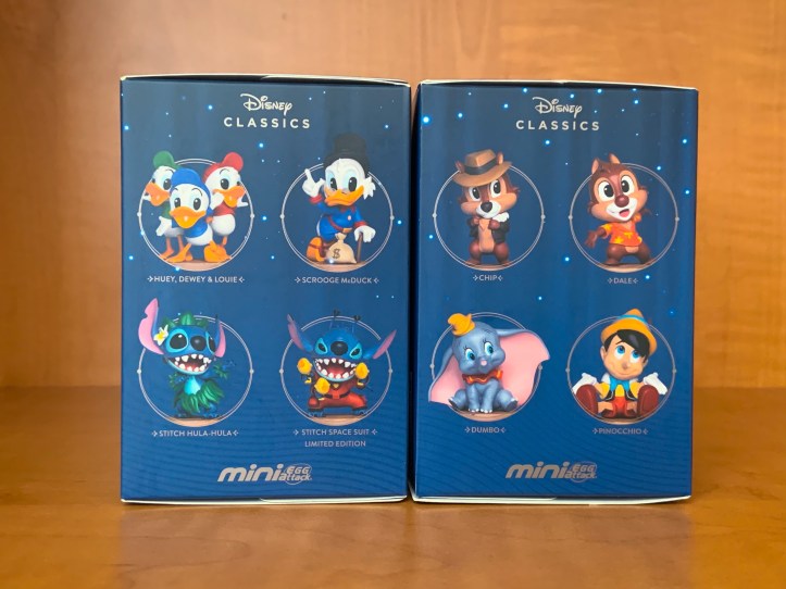 The side of the boxes shows all of the other figures in the Disney Classics Mini Egg Attack series.