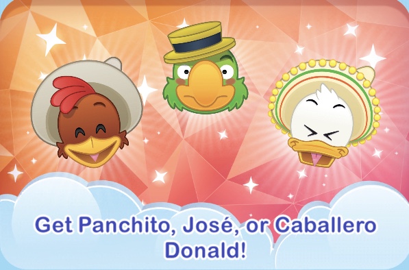 Jose Carioca and Panchito Pistoles are Gold Box Emojis which will be available after the event in random Gold Boxes (30000 coins). Caballero Donald Duck is a Story emoji, and he is exclusive to this event which can only be obtain in special boxes.