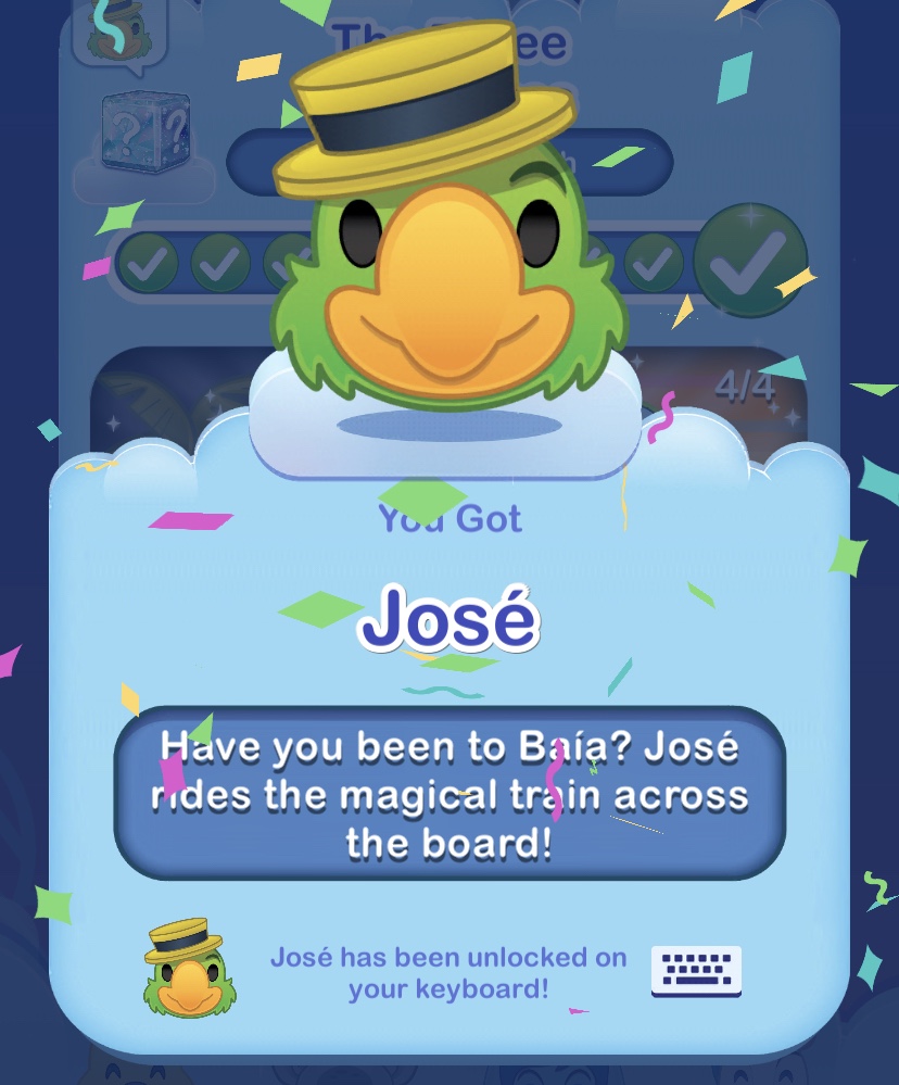 Here are the Three Caballeros item emojis that you can unlock as part of the event. There are four levels that make up this event. The levels are titled: