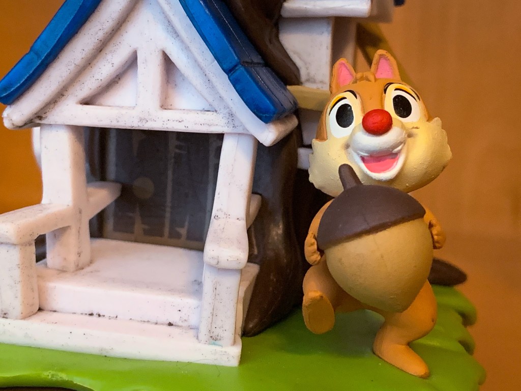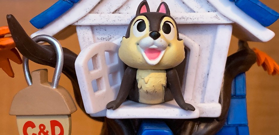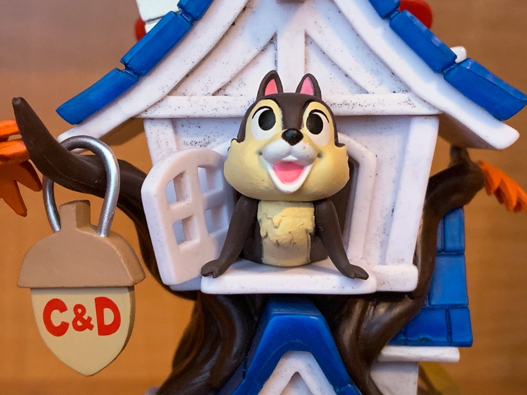 The Chip ‘n Dale Treehouse D-Stage figure is a fun recreation of what it looks like in Mickey’s Toontown. The C & D nut tag is aborable.