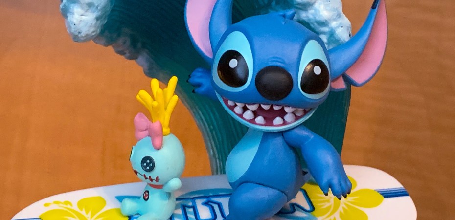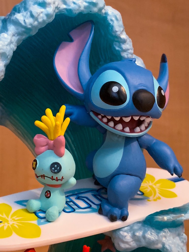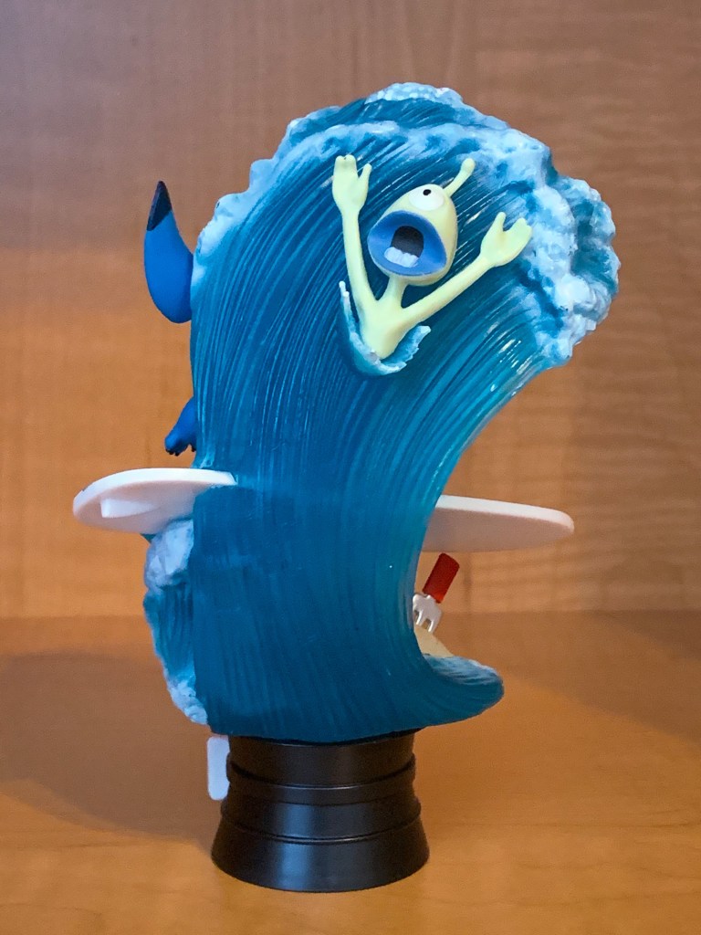 The hidden feature on the back of this D-Stage figure is Pleakley being caught up in Stitch’s wave.