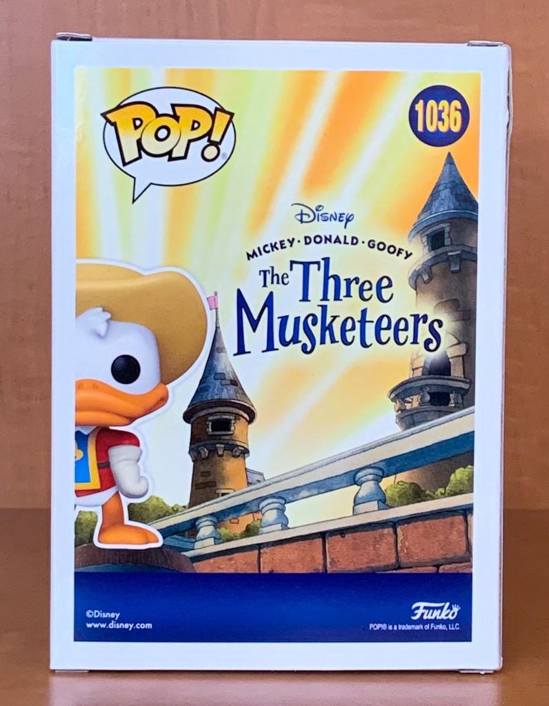 Donald Duck is a very colorful Funko POP! figure in his Musketeer attire.