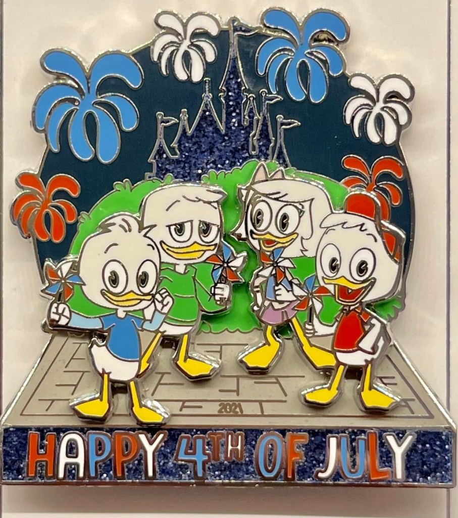 A surprise pin release featuring the DuckTales 2017 designs of Huey, Dewey, Louie, and Webby was released at Disneyland and Walt Disney World to celebrate the 4th of July. The limited edition of 5000 pin retails for $19.99.