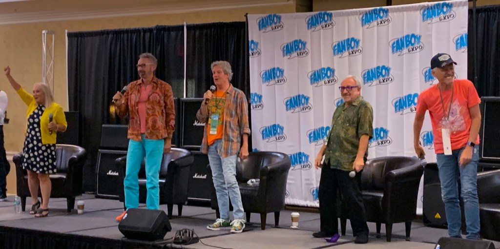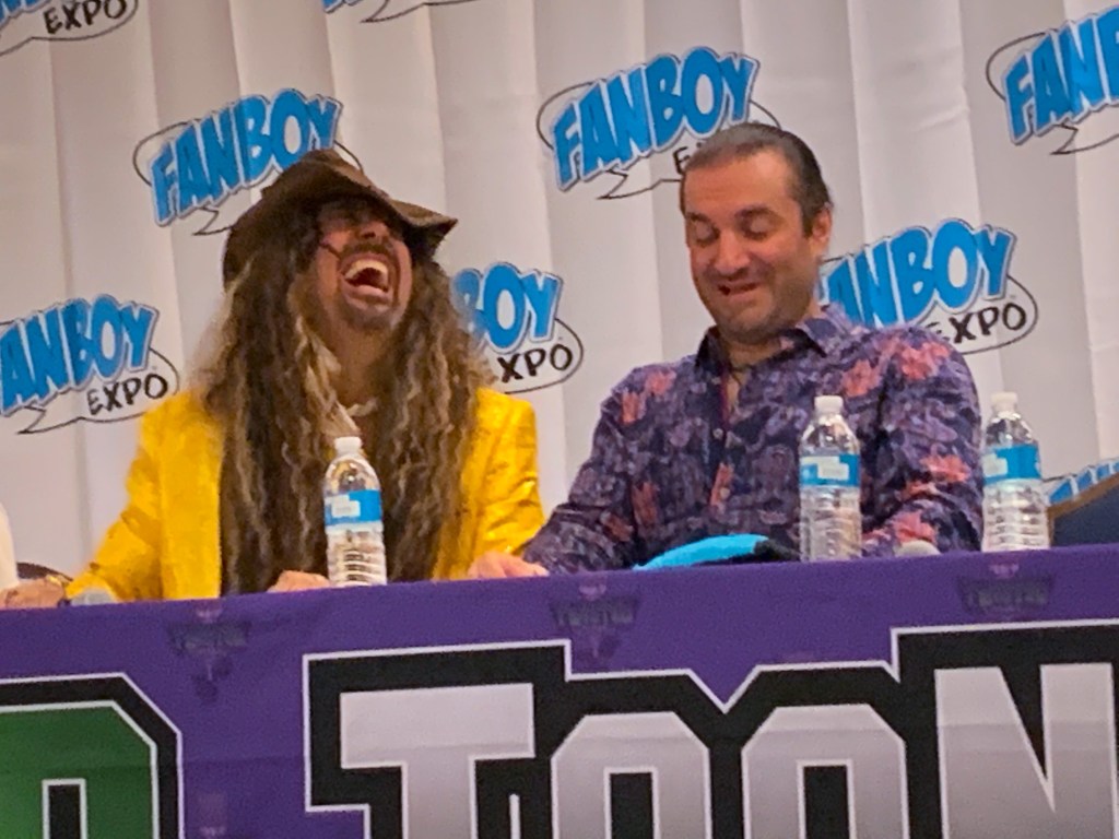 On Saturday August 21st, I went to the Teenage Mutant Ninja Turtles Reunion Panel starring the voice talents of Rob Paulsen (Raphael), Barry Gordon (Donatello), Townsend Coleman Michelangelo ( Michelangelo), Cam Clarke (Leonardo) and Ranae Jacobs (April O’ Neal) from the original 1987 animated series. It was epic to see the cast in the same place at the same time. I don’t know how rare that is for them, but this was something that I didn’t know that I needed to experience that I am so thankful I did not miss. t has been almost 35 years since they started their turtles journey, and they still had that family team chemistry. As an 80s kid, it felt like I was seeing classmates from my childhood grade school years. Hearing Towsend Coleman yell out Cowabunga gave me goosebumps. Don’t tell Jason at Turtle Recall how much I geeked out at this panel.