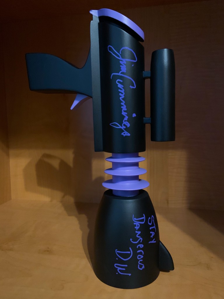 At the end of Saturday, I decided to cap off an already memorable day at Fanexpo Orlando by visiting Jim Cummings at celebrity row. I paid for an autograph and had Jim sign a replica of Darkwing Duck’s gas gun that I ordered on etsy. It was a perfect memento for the event.
