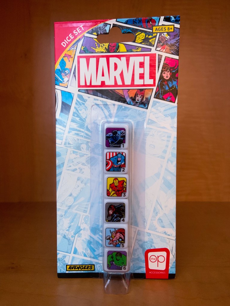 It’s time to hero up! The Marvel Avengers dice set features your favorite heroes in their Marvel Comics classic looks.