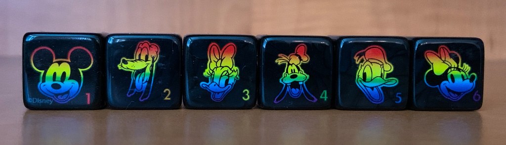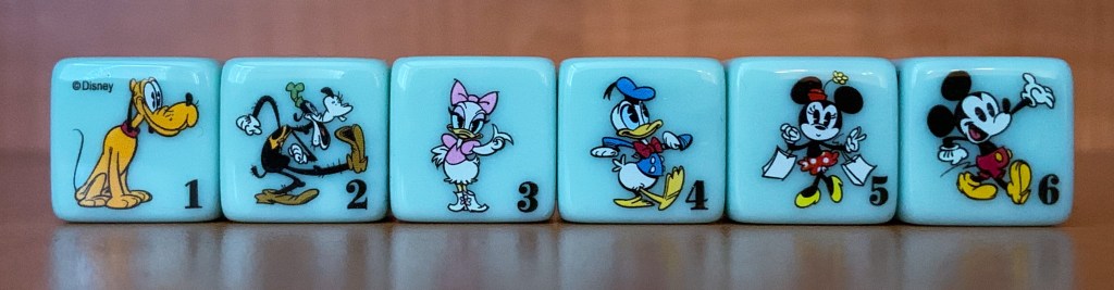 Let’s start by taking a look at the Mickey and Friends dice set.