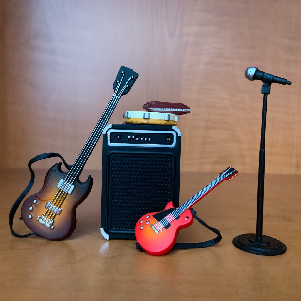 Floyd and Janice come with two guitars, a tambourine, a harmonica, a speaker, and a mike stand.