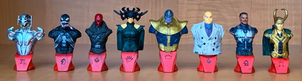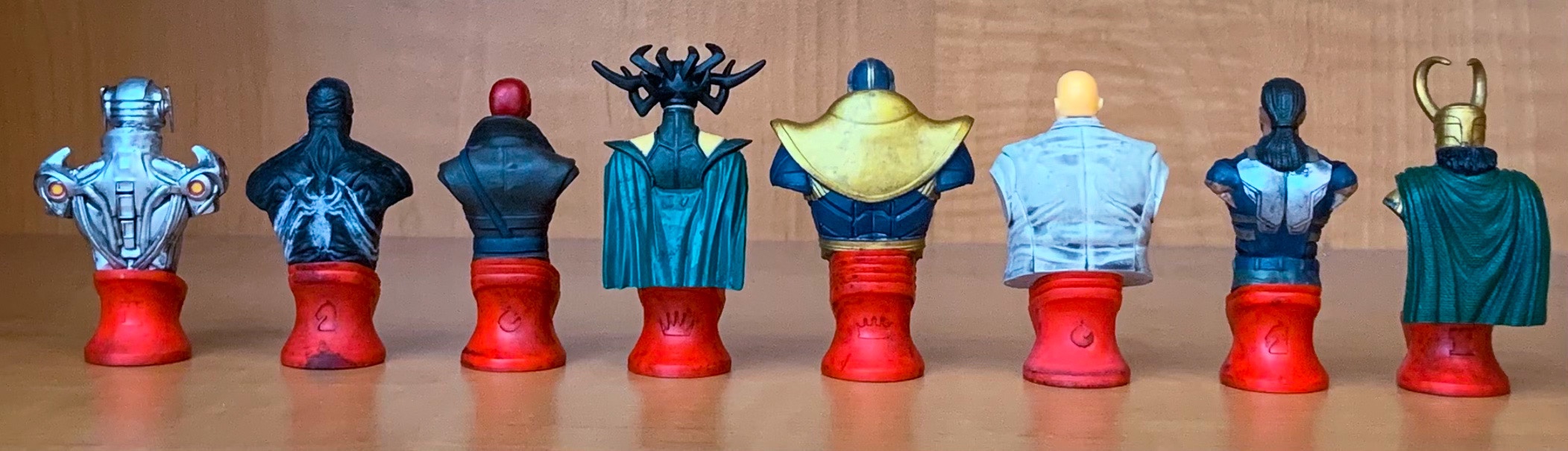 Ultron (Rook), Venom (Knight), Red Skull (Bishop), Helena (Queen), Thanos (King), Kingpin (Bishop), Killmonger (Knight), Loki (Rook)