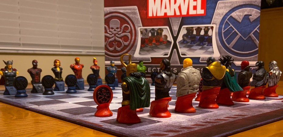 Excelsior! This super powered work of art collector’s chess set is the ultimate chess set for Marvel fans. The dynamic theme of this set turns an ordinary strategic game of chess into an epic Marvel Heroes vs Villains battle. Words like amazing and spectacular also come to mind. I love the selection of Marvel Heroes and Villains characters chosen for each chess piece rank. The chess piece figures are all super high quality which makes it feel like it could easily be a $200 chess set. You just have to decide if you want to be team heroes or team villains. I HIGHLY RECOMMEND the Marvel Chess Collector’s set for Marvel fans.