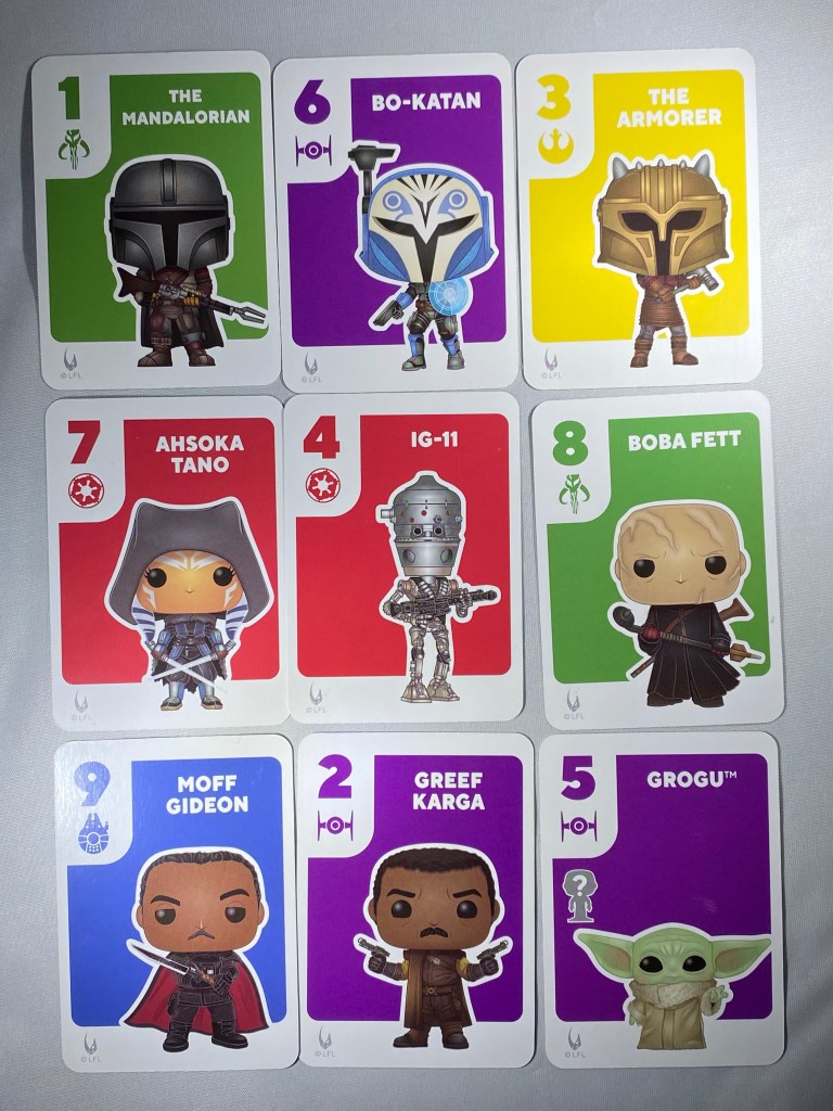 The artwork on the cards is based on Funko Pop!s (is that the correct plural?). You get most of your favorite Mandalorian characters like Din Djarin, Greef Karga, IG-11, Ahsoka Tano and more.