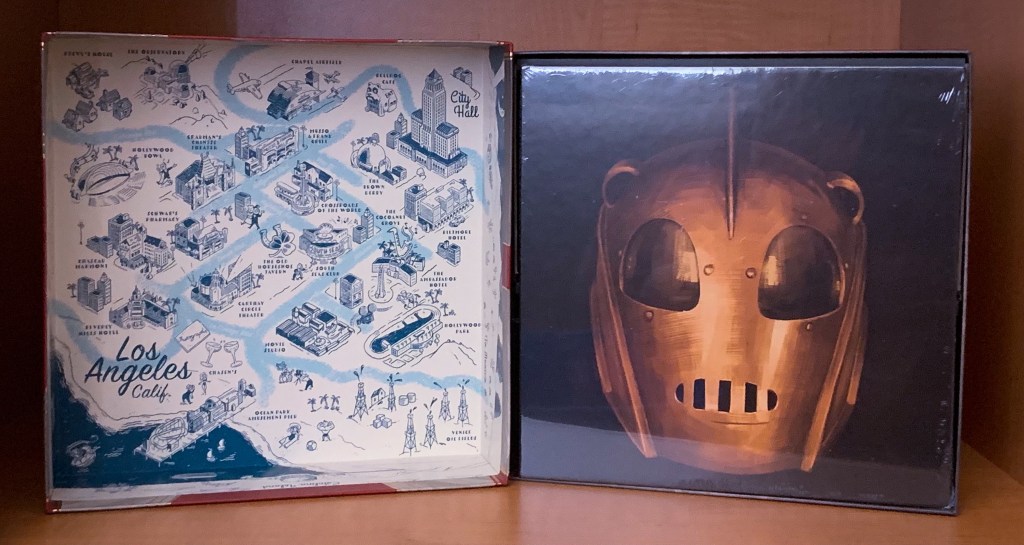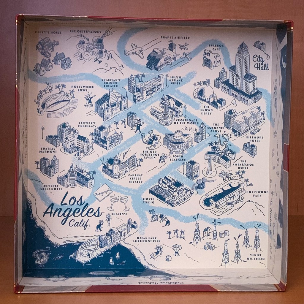 When you open the box, you can see a gorgeously detailed map of Los Angeles from the 1930s. The glorious Rocketeer helmet is the reverse of The Rocketeer: Fate of the Future game board which we will take a closer look at later.