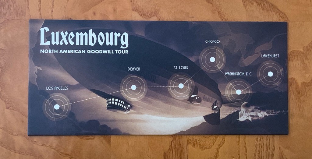 Fight for the Plans to keep them out of your enemies’ hands. The fate of the future depends on it! Gain Finale cards if you have the Plans or control locations around Los Angeles. When the Luxembourg Zeppelin reaches Los Angeles on its Goodwill Tour, use your Finale cards to add up your points. The player with the most points wins!