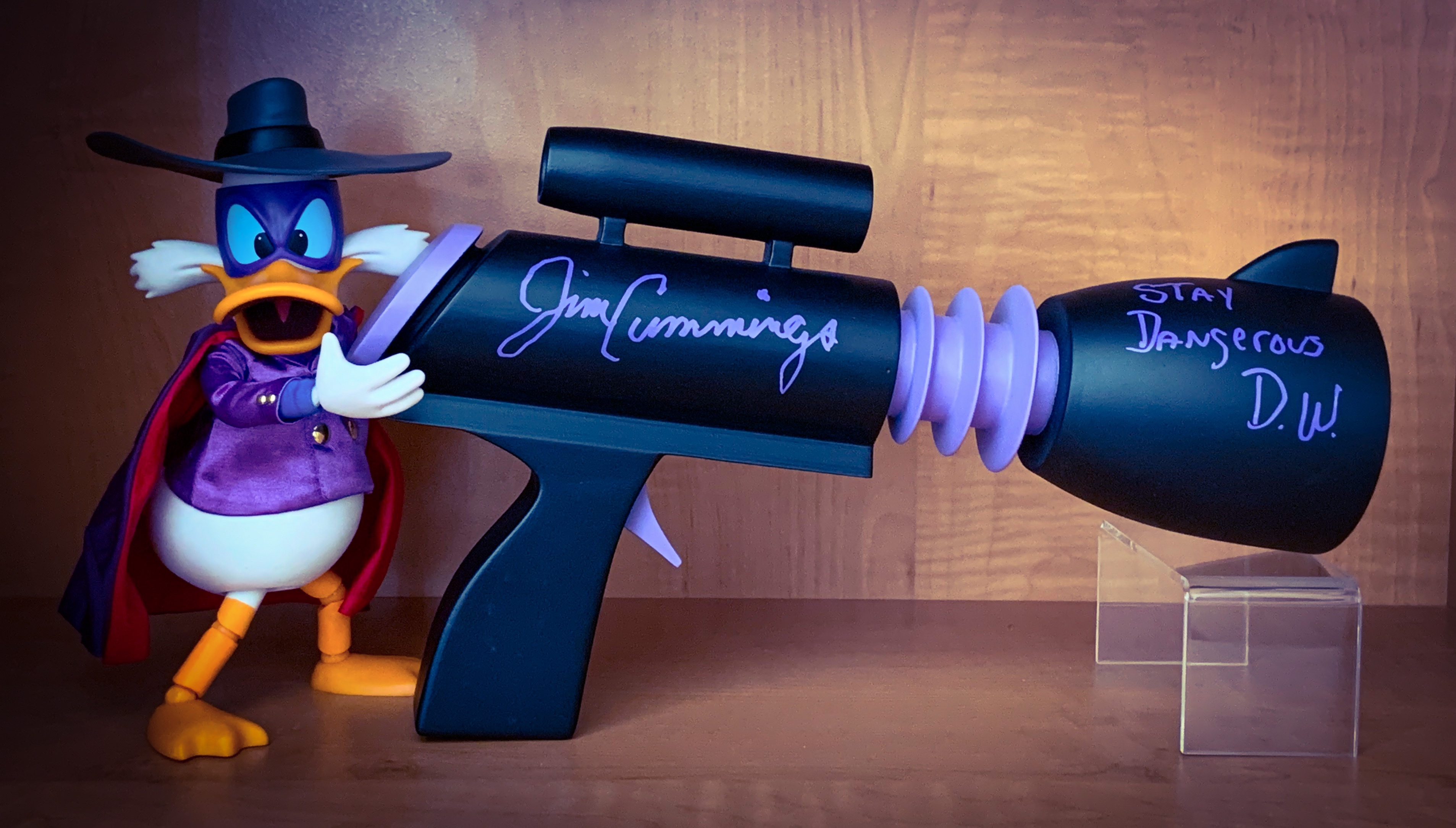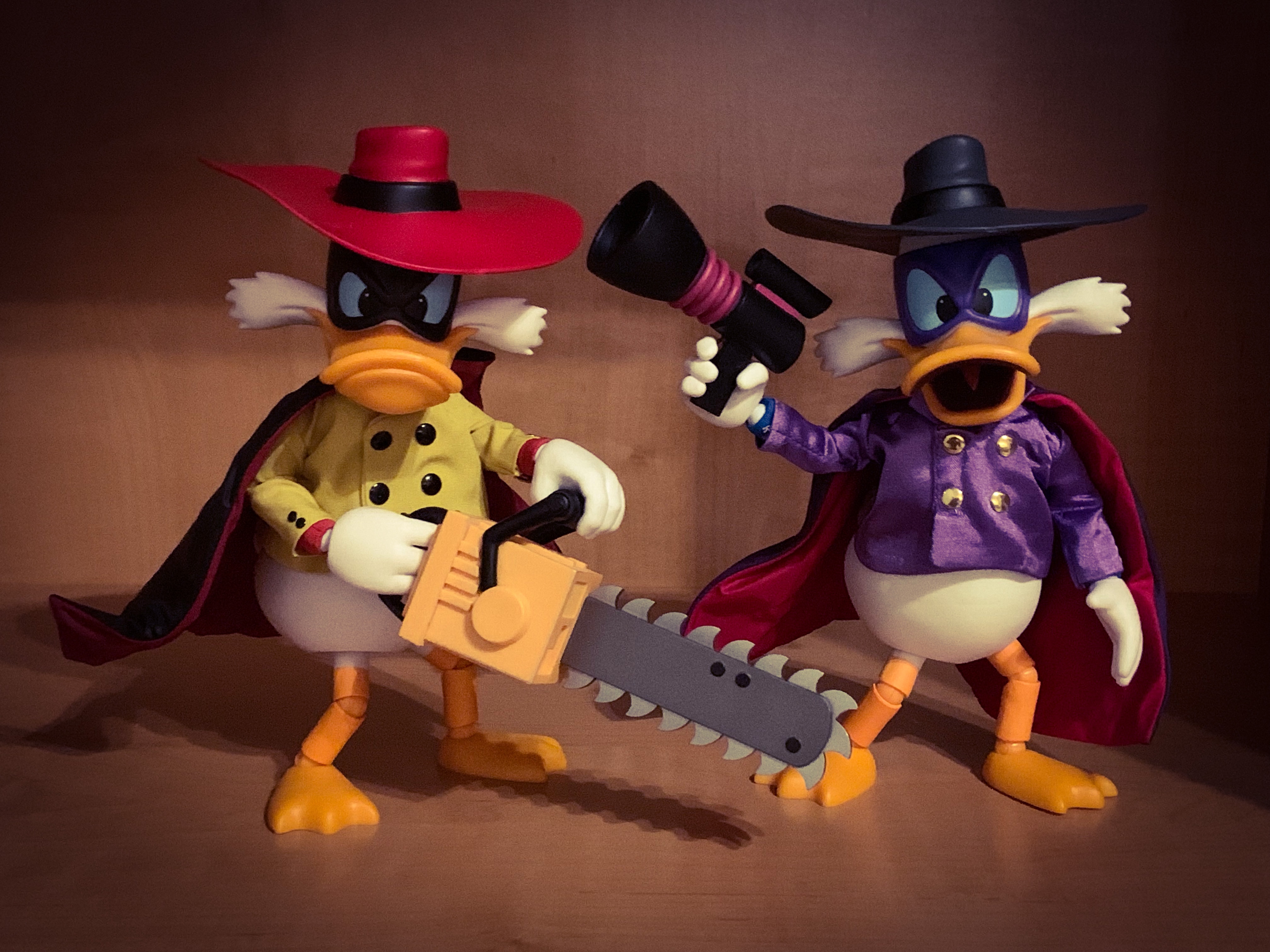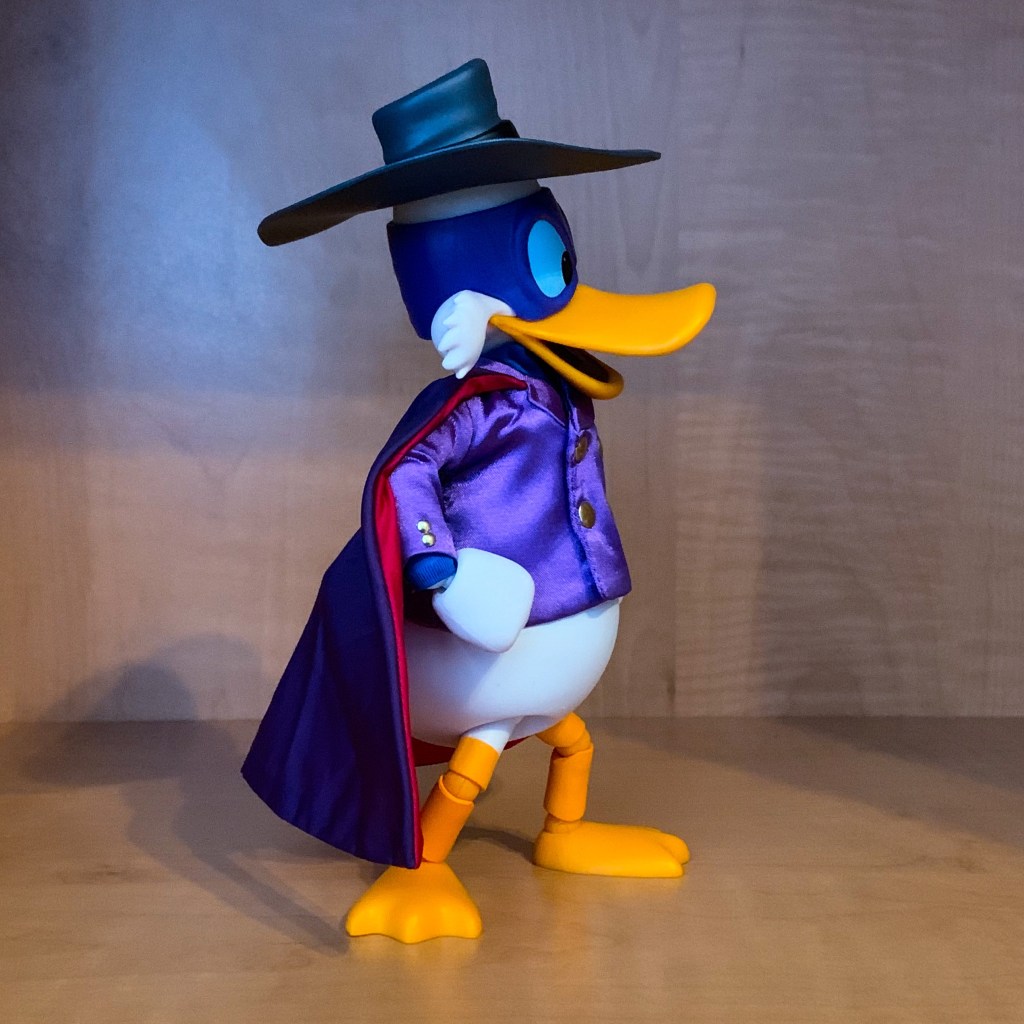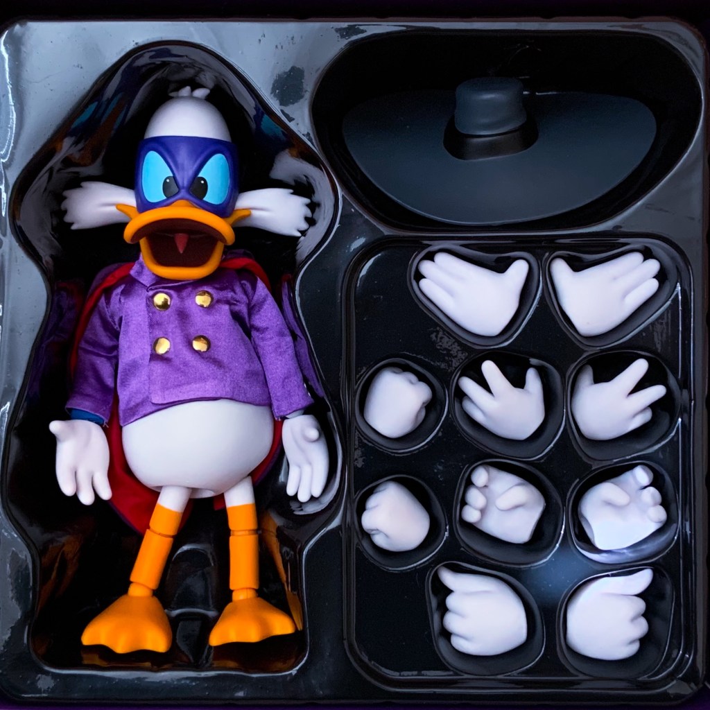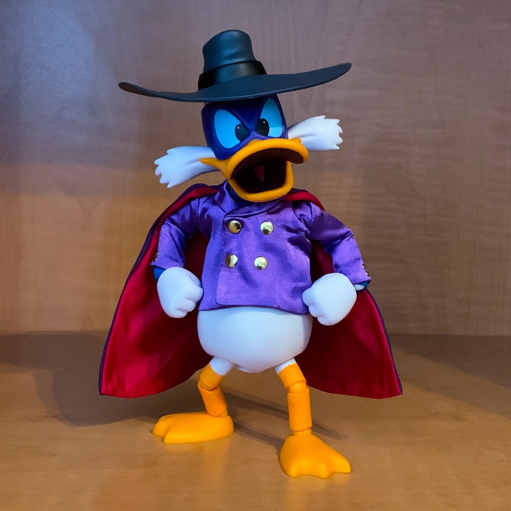 There have been other Darkwing Duck action figures released in the past, but this one really stands out. I was really hyped when this figure was first announced and revealed, but it looks even better in person and exceeded my expectations. It is a dangerous dream come true to have my favorite Disney character in 1/9th scale size with such great articulation and customizations to pose in my Darkwing Duck collection. I love the alternate eyes/mask, beaks, and hands accessories. I am thrilled that Beast Kingdom also chose to release a Negaduck figure in their Dynamic 8ction Heroes figure line. This gives me hope that other characters from the show could get released if Darkwing and Negaduck sells well. I would love to see Beast Kingdom expand on this collection with Launchpad McQuack, Gosalyn Mallard, Bushroot, Megavolt, Liquidator, and Quackerjack. Get dangerous and get this amazing Darkwing Duck figure!