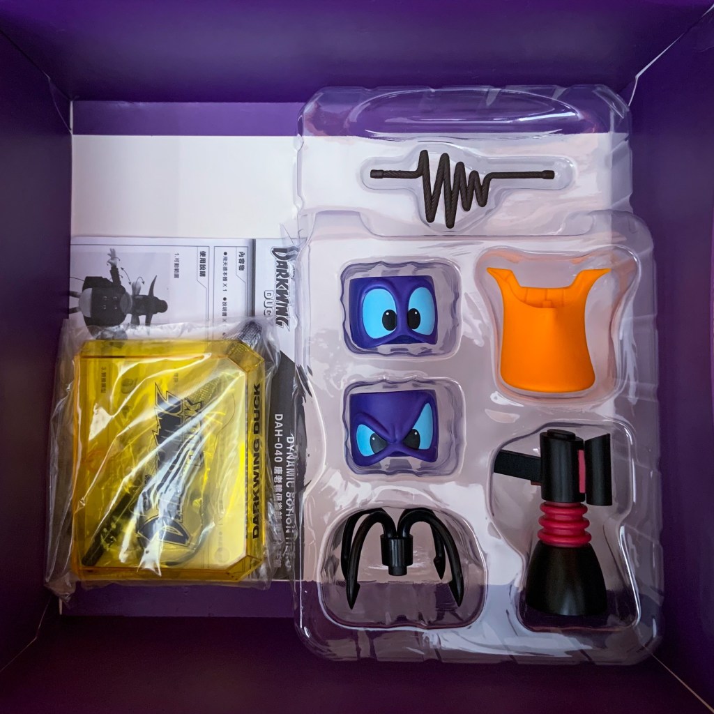 The Beast Kingdom Darkwing Duck (DAH-040) figure comes with a collection of accessory items to customize Drake Mallard for play or display. The alternate parts are all really easy to swap out to your liking.