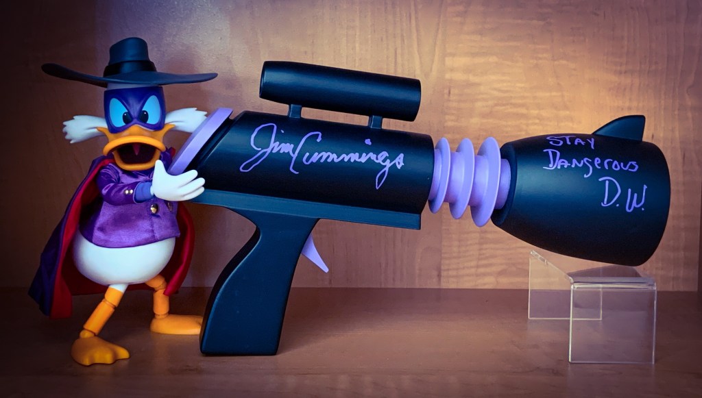 It is great to have a Darkwing Duck action figure that can actually hold his gas gun / grappling gun. The three different options to display the signature Darkwing Duck gas gun / grappling gun is a fun added bonus.