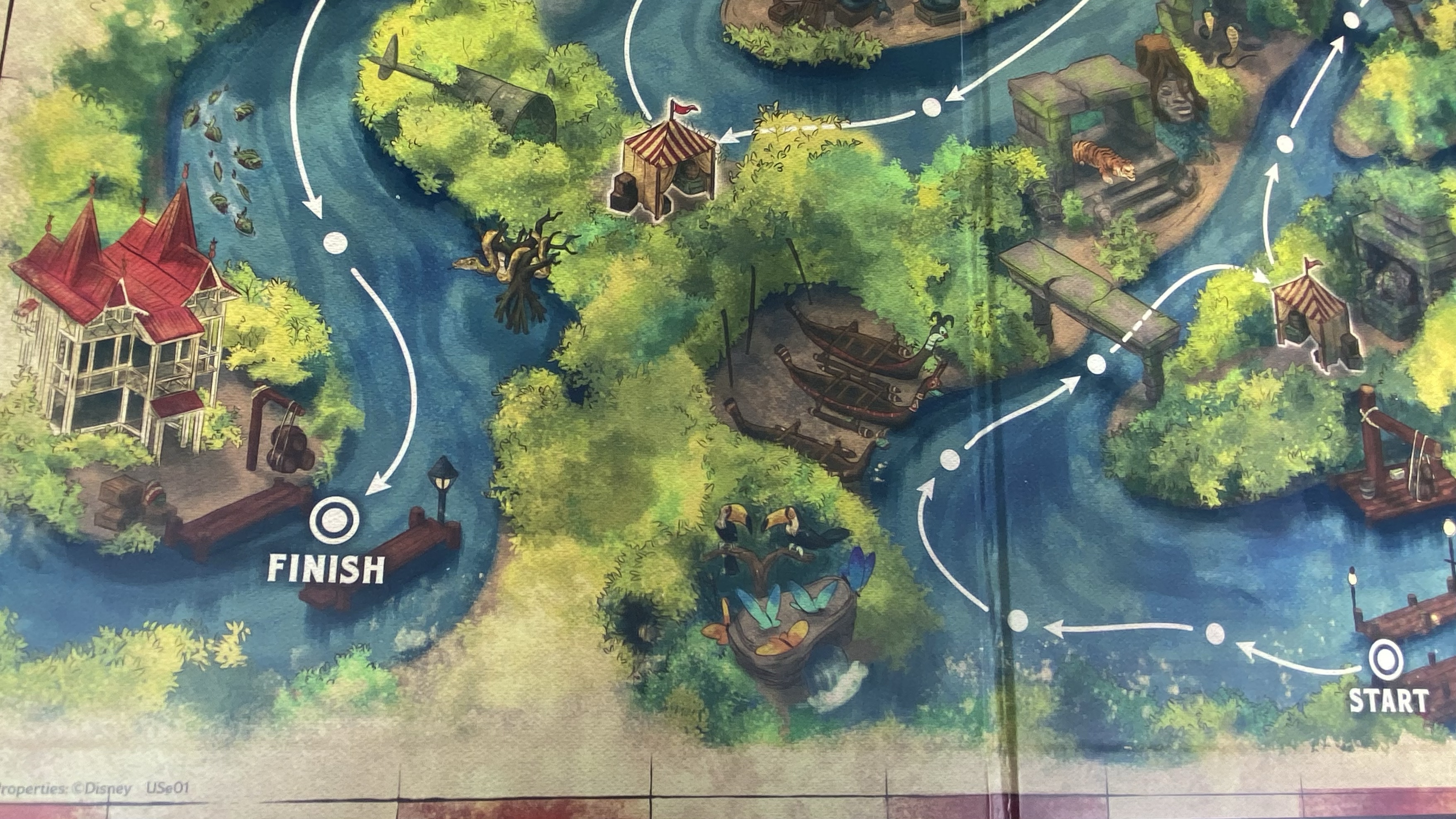 The Game Board is themed to match the world-famous attraction perfectly, and we felt that it complimented the movie well. The board allows you to choose your path a couple of times, taking shortcuts that can cost you clues that may increase your tip for navigating the jungle more quickly than your fellow skippers, but it also may cost you if you carry the wrong cargo.