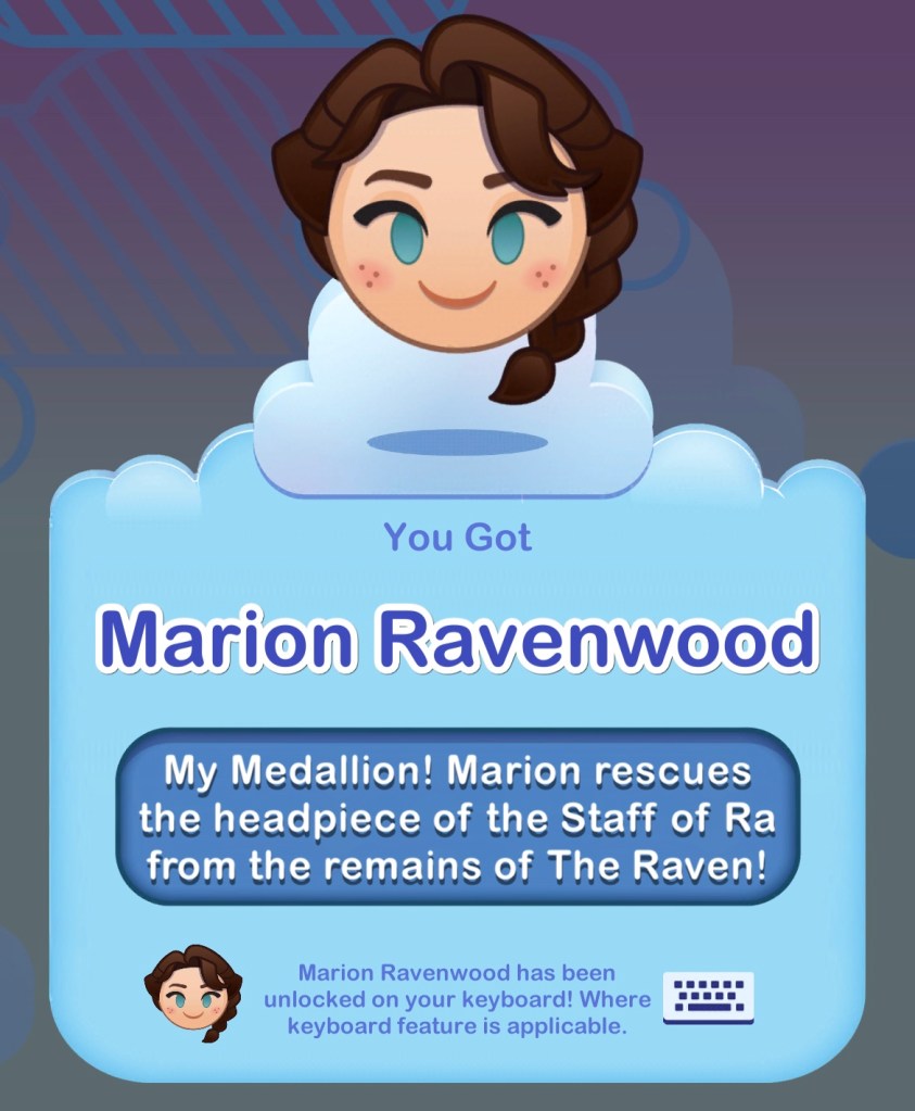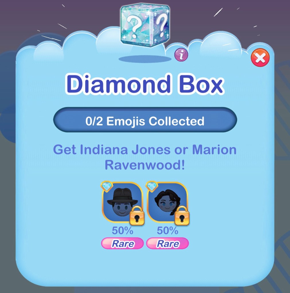 Upon completing the event, you will earn a diamond box where you will have a chance to unlock either Indiana Jones or Marion Ravenwood. During the event, you will unlock additional Indiana Jones related item emojis. You can also purchase a diamond box in game for 200 gems which you can pay for with real money or earn in game.