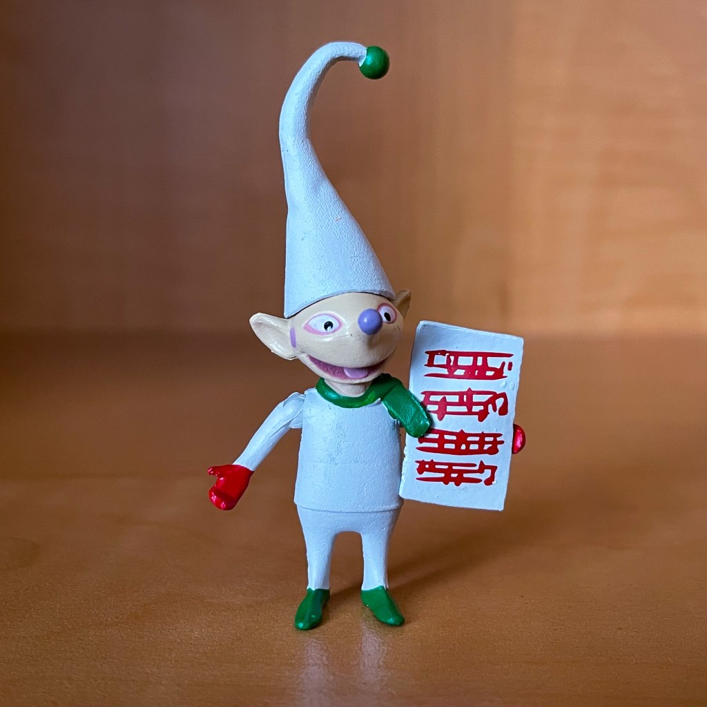The Choir Elf comes with a music sheet. This character is from the scene in Christmas Town when Jack Skellington is singing his “What’s This?” song.