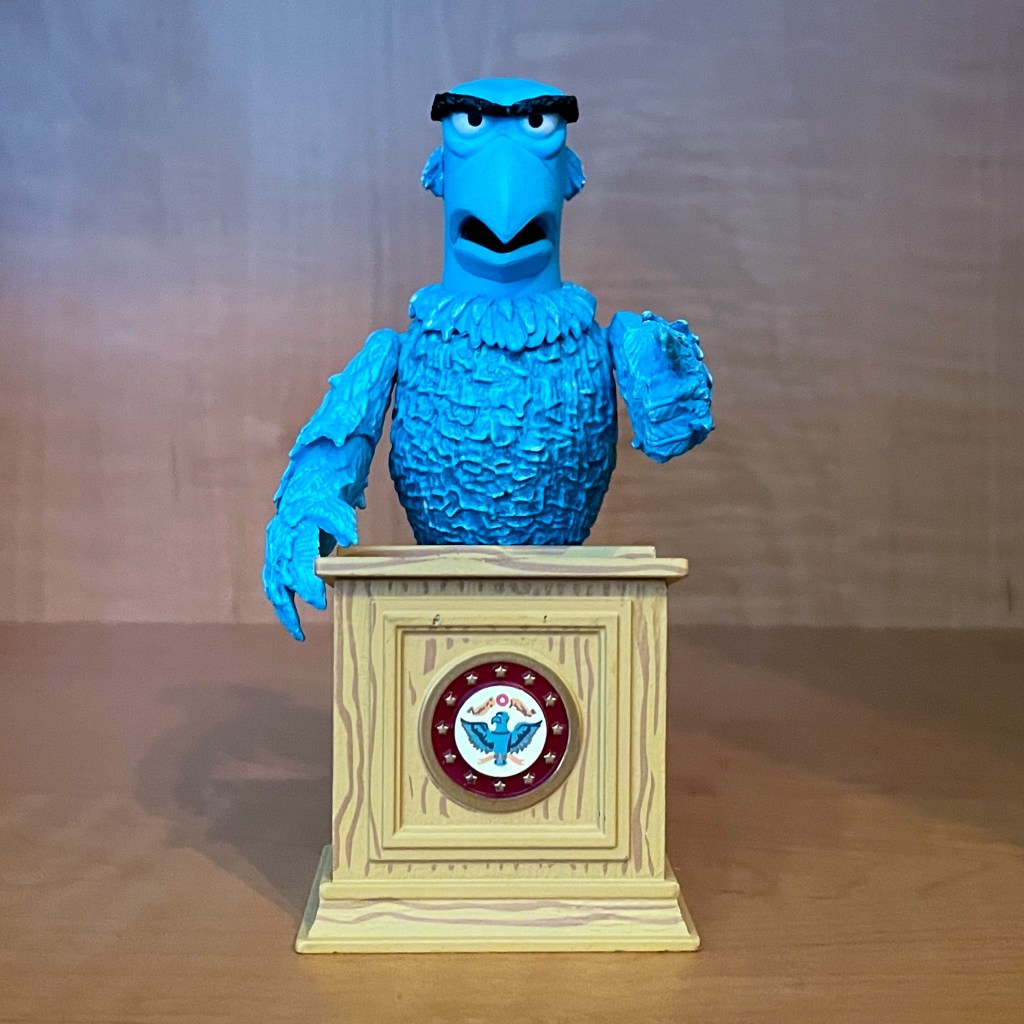 This figure pack comes with Sam the Eagle’s presidential pedestal accessory.