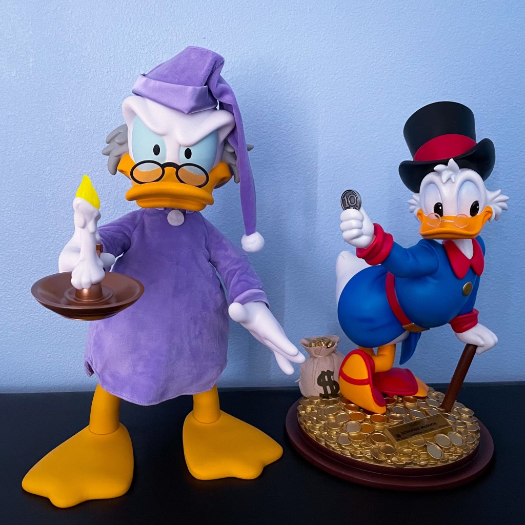 Here is the Super7 Ebenezer Scrooge Supersize figure next to the Beast Kingdom DuckTales Scrooge McDuck Master Craft statue which measures around 15” inches.