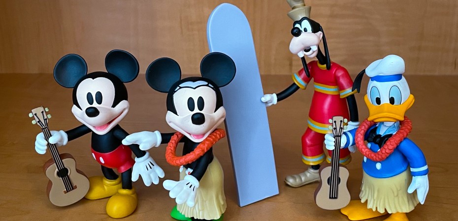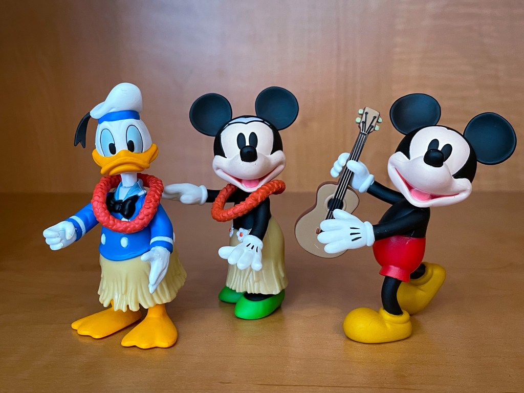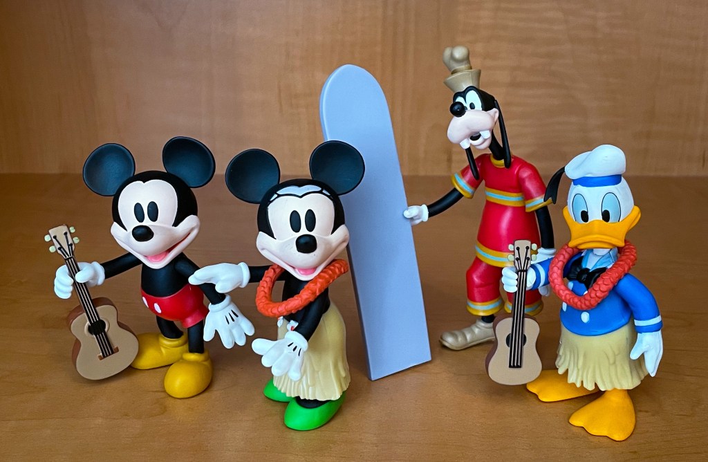 Wave 2 featured Mickey Mouse, Minnie Mouse, Donald Duck, and Goofy from Hawaiian Holiday. The only character from Hawaiian Holiday not included in this wave is Pluto. Pluto would most likely resembled the Pluto from Wave 1 minus the Canine Patrol hat.