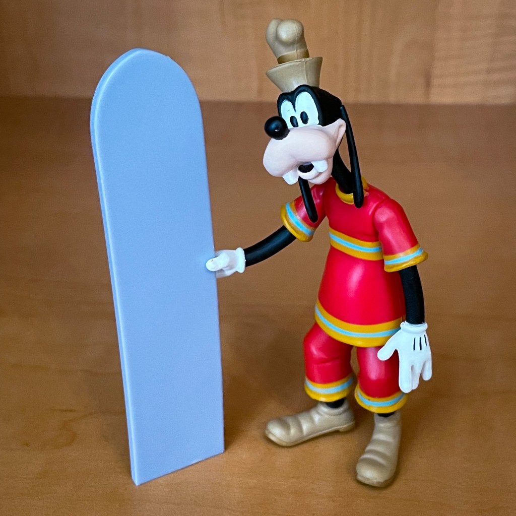 Goofy comes with a surf board accessory. Goofy has five points of articulation: head, arms (2) and legs (2). Goofy was the only character from this wave that I had to work on distributing the weight in my poses so that he wouldn’t fall over. There is a peg on the surf board that you can stick into a hole on the bottom of Goofy’s shoe.