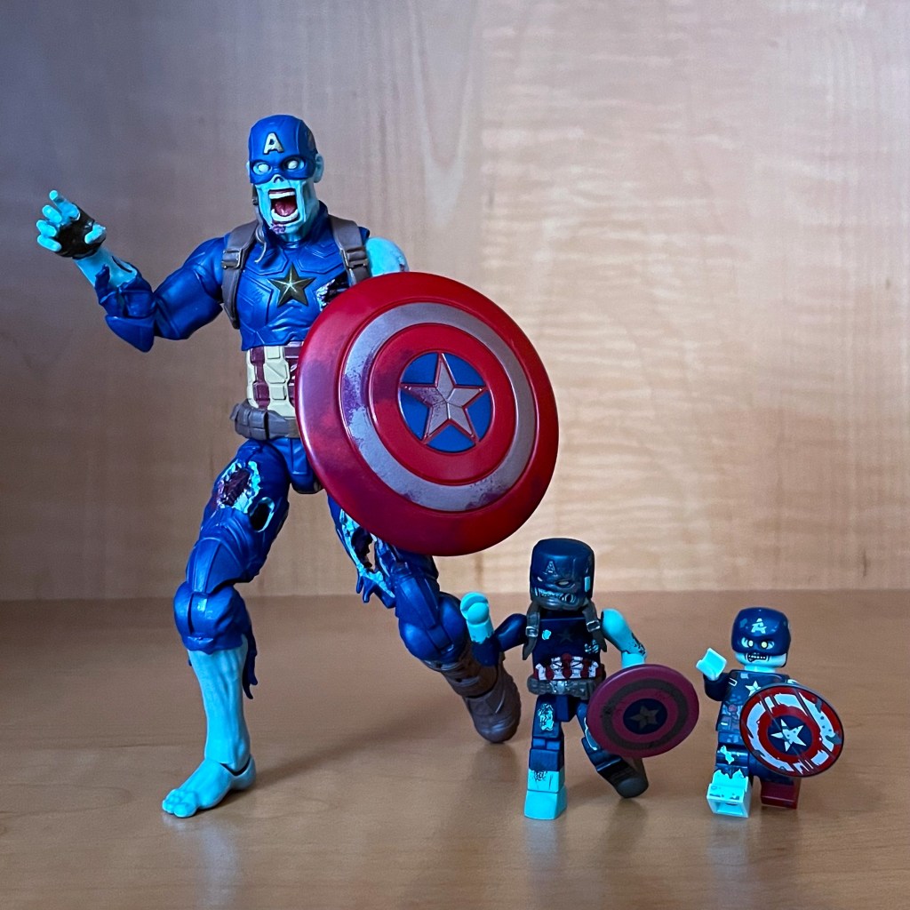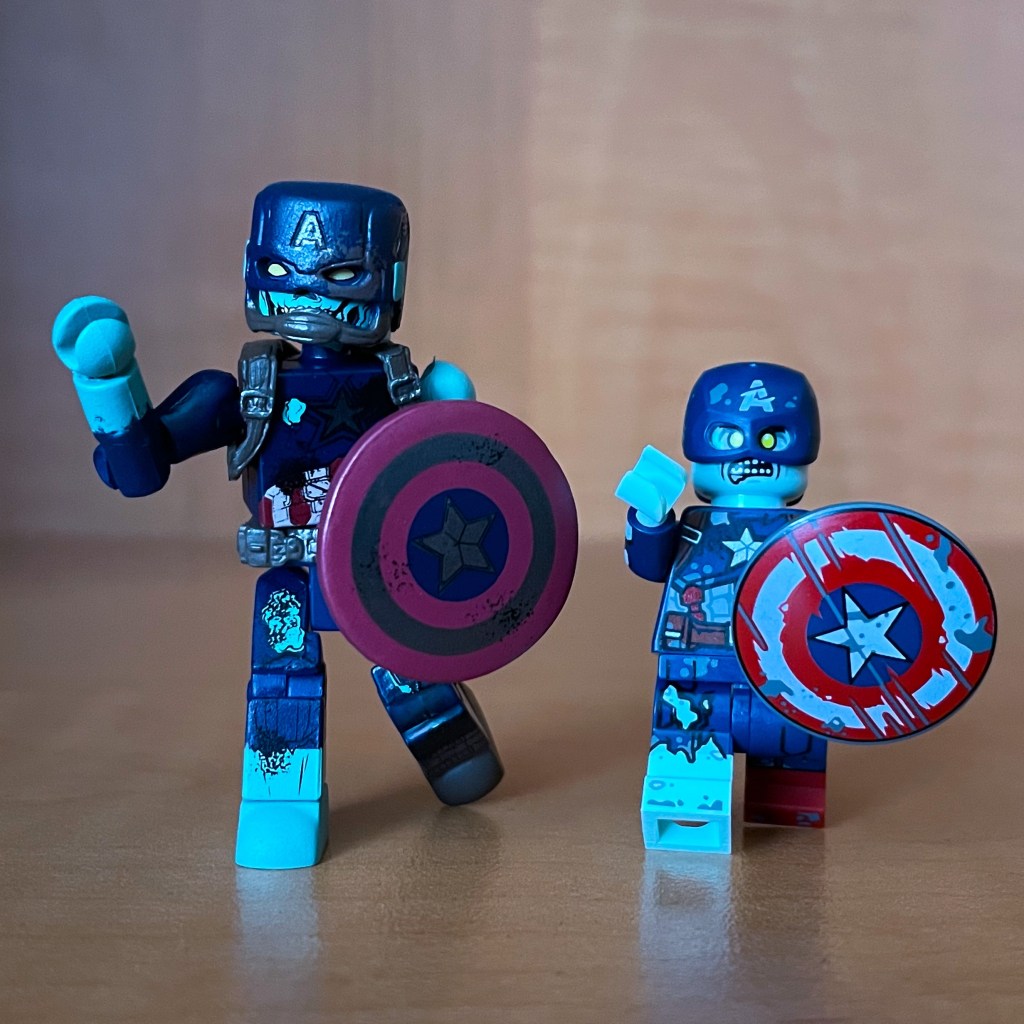 Below we have some comparison pictures with the Zombie Cap LEGO minifigure and Hasbro Marvel Legends figure.