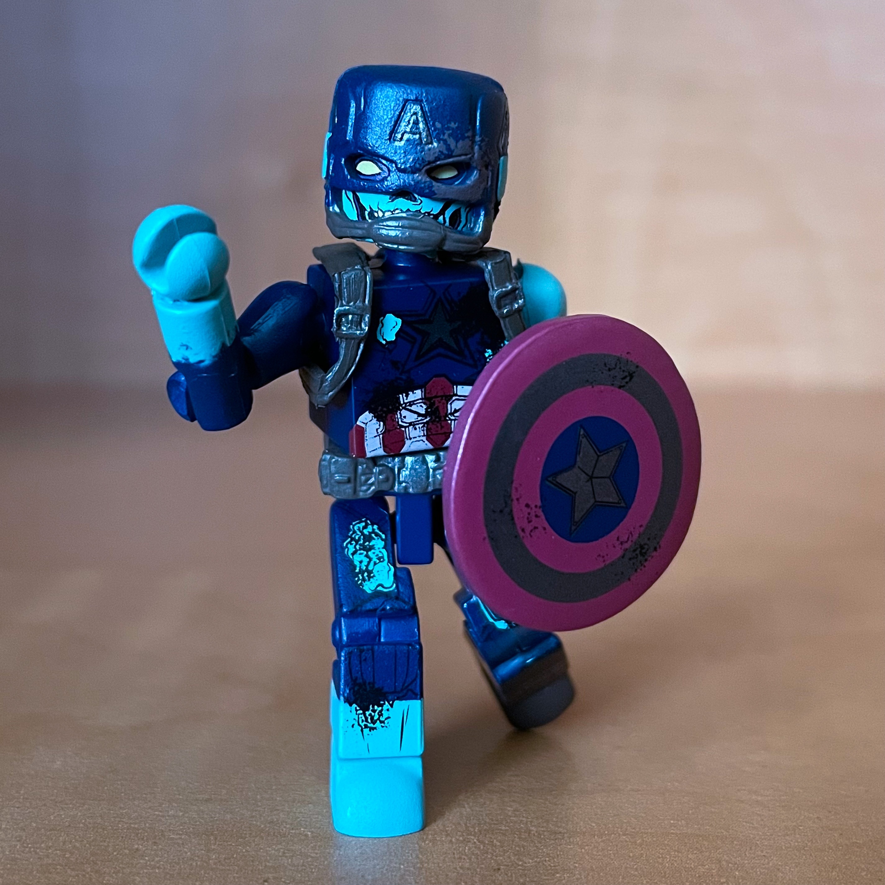 The Zombie Captain America Minimates figure looks absolutely menacing in his deteriorating flesh details. His shield accessory looks a little too clean for Zombie Cap and could have used a little more wear and blood stain details.