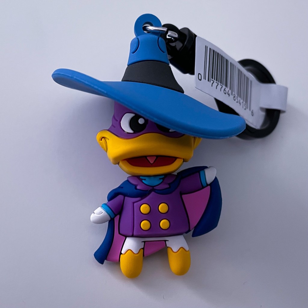Let’s Get Dangerous! Darkwing Duck is my favorite Disney character, but this would be a good example of where the previous release of DW in the DuckTales figural key ring series was more definitively dangerous Darkwing. This new version of DW makes the mistake of coloring his cheeks to match his bill which we have seen in some merch. I do like the more dynamic pose of holding his cape and the swoosh of his hat. He is also missing his gas gun which he is shown holding in the promotional photos of this series. It is still new Darkwing Duck merch so get dangerous!