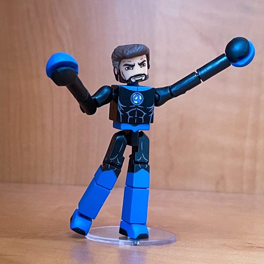 Mr. Fantastic comes with a few extra accessory parts for you to make him into his stretching forms with elongated arms, hands, and legs. All figures in this set include a clear circular stand that you can connect to the bottom of the figures feet for extra posing assistance.