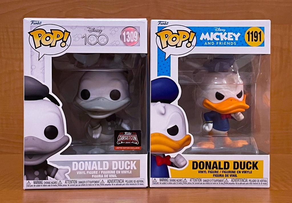 Beyond those color inaccuracies, I love that we have an early model Donald Duck to display in our collections. I have always wanted a Donald Duck through the years figure collection, and this one looks great displayed next to the modern Donald Duck Funko POP! figure.