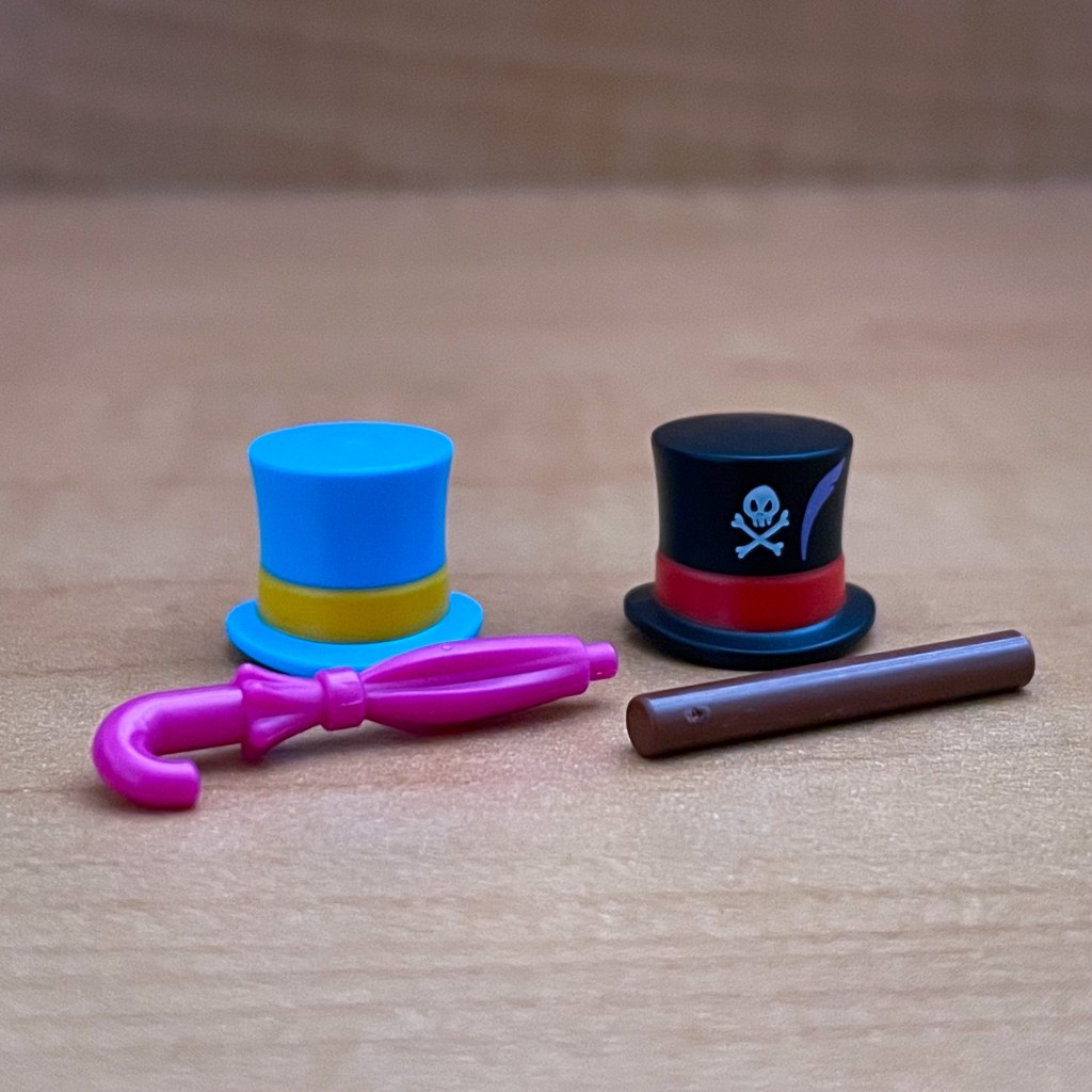 For Dr. Facilier, you are going to want to feel for his top hat, voodoo card, and his cane. Dr. Facilier’s mystery pack also comes with an additional cane and cane pieces. So you feel two canes in the mystery pack.