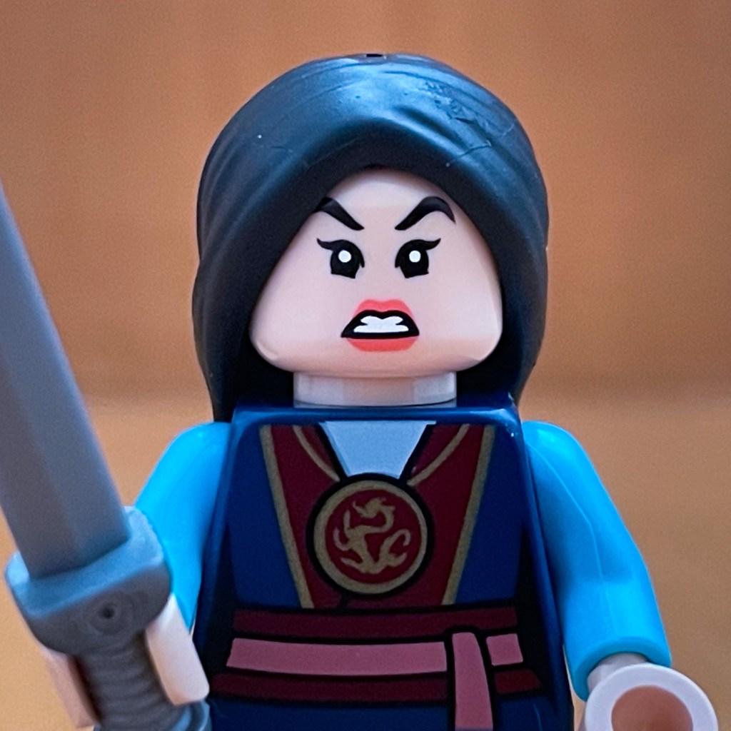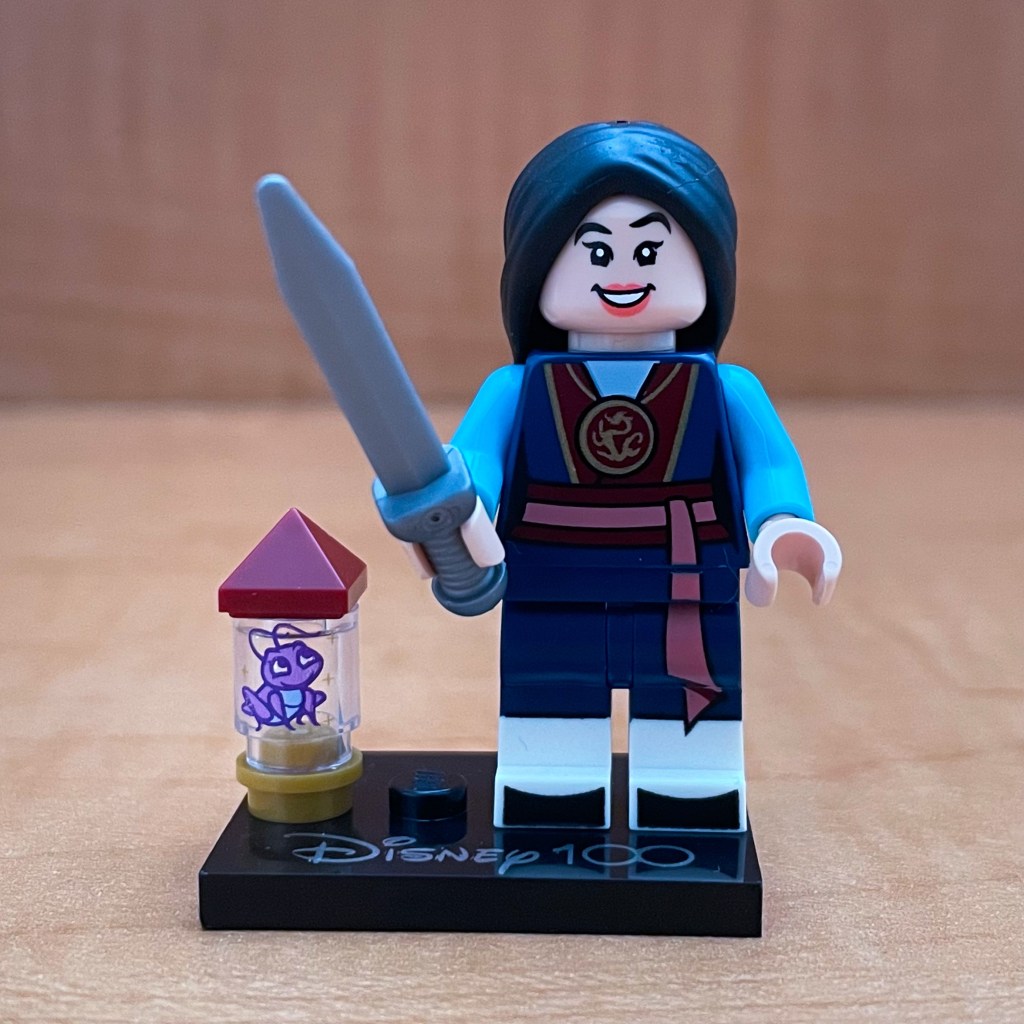 For Mulan, you are going to want to feel for her long straight hair. She is the only figure with long straight hair. There are also plenty of distinguishable accessories including two swords and the pointy triangle piece on the top of Cri-Kee’s enclosure.
