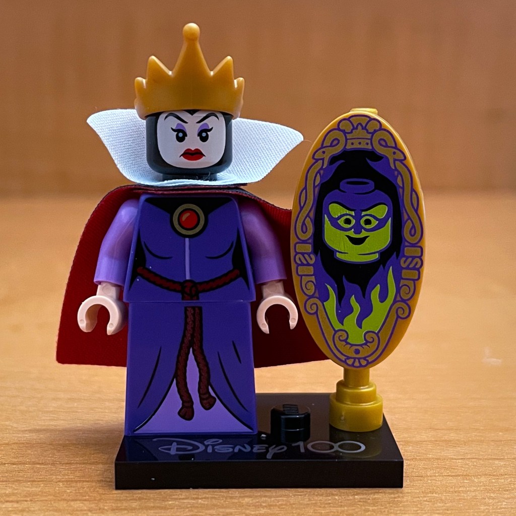 The Evil Queen is still the fairest of the land in my book. It is great to have the villain from the feature length animated movie that started it all in LEGO form. She comes with her magic mirror. I hope that we get her Old Hag look at some point too.