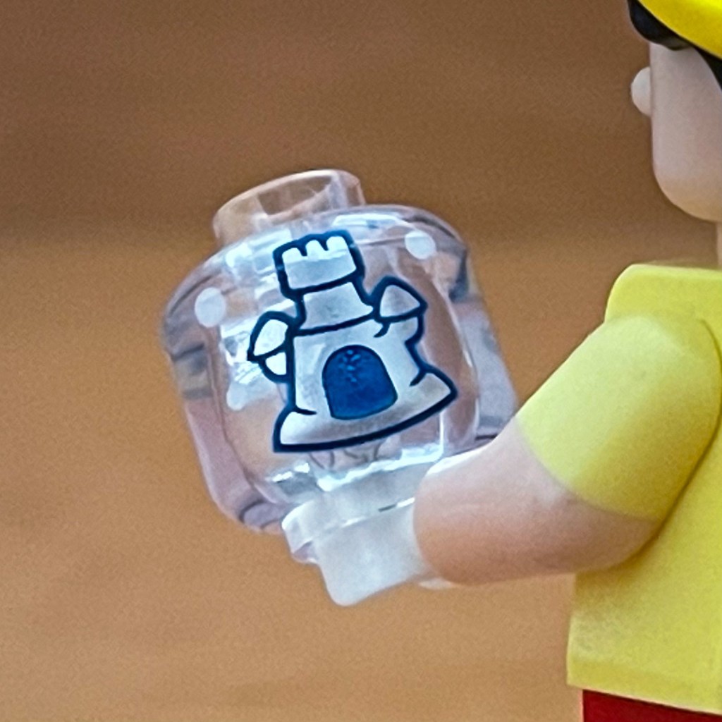 For Oswald, you are going to want to feel for his long ears. Oswald’s accessory is a flat LEGO brick that is a closed movie clip board that says Oswald Act: 2 Take: 1. Dr. Facilier also comes with a similar size and shape Voodoo card accessory piece, but Oswald’s ears should definitely be what you feel for.