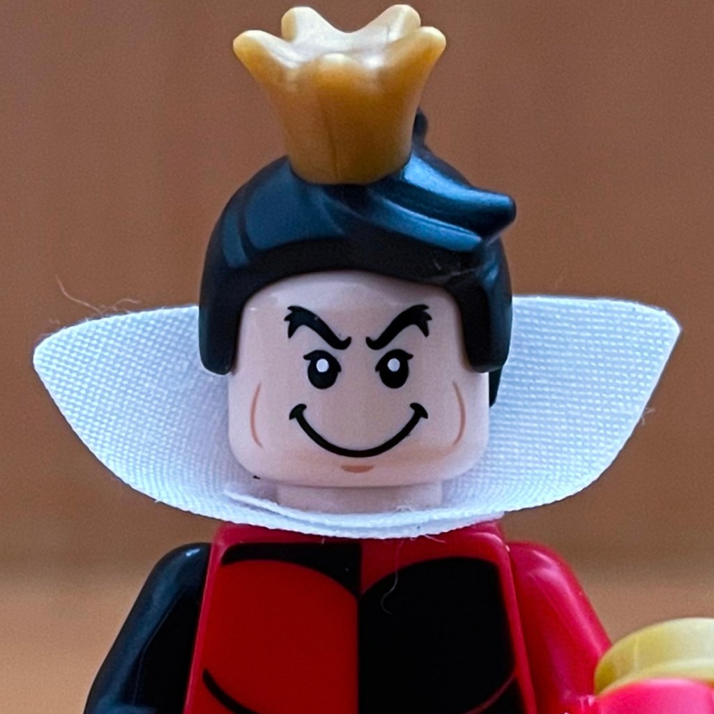 Off with their LEGO heads! The Queen of Hearts is my favorite character from Alice in Wonderland. She is so pleasant and level headed all of the time and a great croquet player. The Queen of Hearts comes with a heart scepter as an accessory.