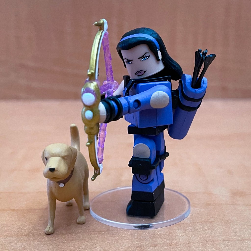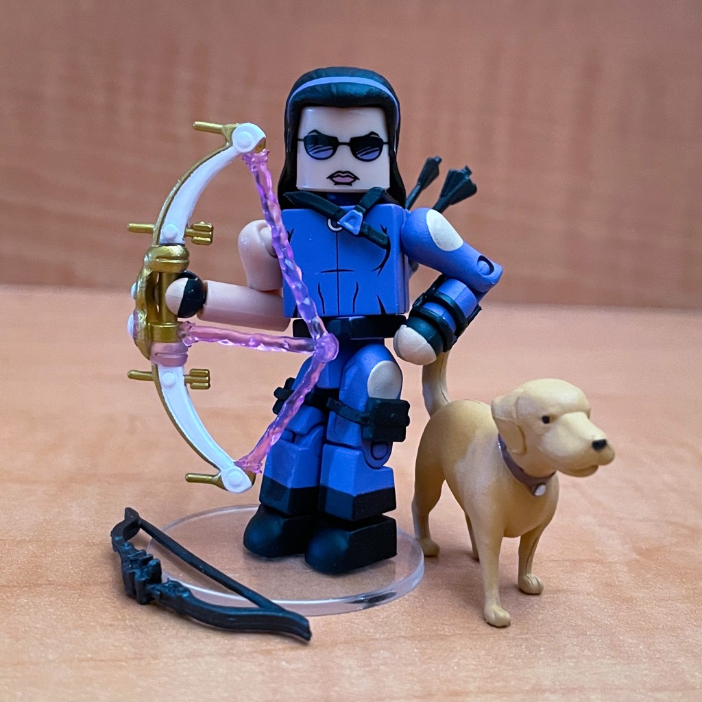 Hawkeye comes with an alternate head with painted on purple glasses. Her best accessory by far is her faithful pet dog Lucky which should definitely be considered a bonus character in this set. I wish that a pizza slice would have been included for the Pizza Dog.