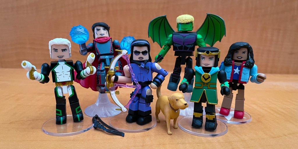 I fully admit that my knowledge bank on the Young Avengers is limited, but I look forward to getting to know them more from the comics as well as any future MCU productions. This looks like a fun super hero team, and Marvel Minimates fans are excited to be able to build their collection with new characters. This set is great fan service for the the dedicated Marvel Minimates collectors. My favorites from this set besides the obvious Lucky dog are Kate Bishop “Hawkeye” and Kid Loki. This is the third Marvel Minimates set that we have showcased on the blog with Marvel Zombies and the Fantastic Four being the other two. I can definitely see why fans love Minimates so much. The small size, articulation, and deep bench of characters makes this a fun product line to display and collect.