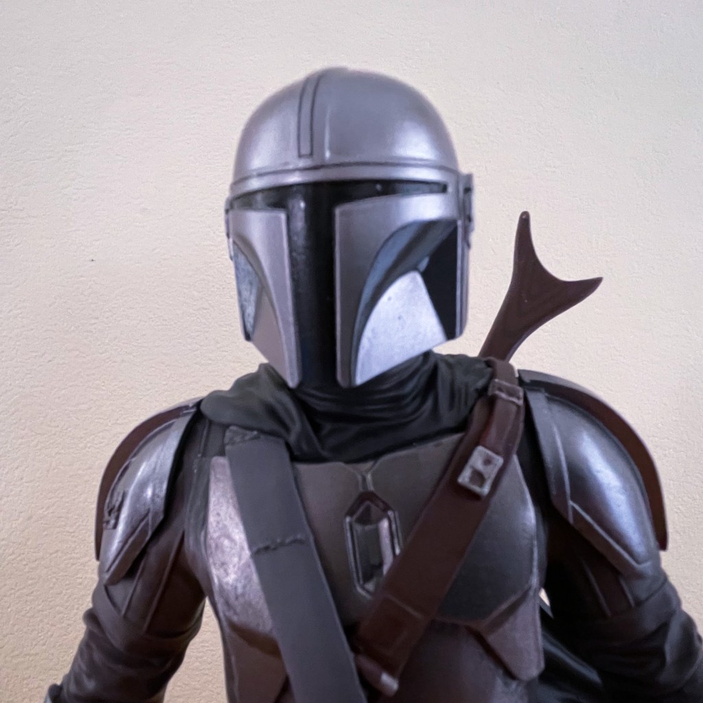 This is one of four Gentle Giant LTD Premier statues featuring Din Djarin in his journey with his little friend Grogu. I am sure that there will be more released in the future. It would be epic to have them all on a shelf together to tell the story of the Mandalorian. There is always a great debate to go for a statue or a posable figure, but this is the pose that I would go with for a posable figure plus with get that nice sand stone base. The quality of this Premier statue sculpt is as if the Mandalorian Armorer forged it herself. It would make a great addition to your Star Wars or Mandalorian collection.