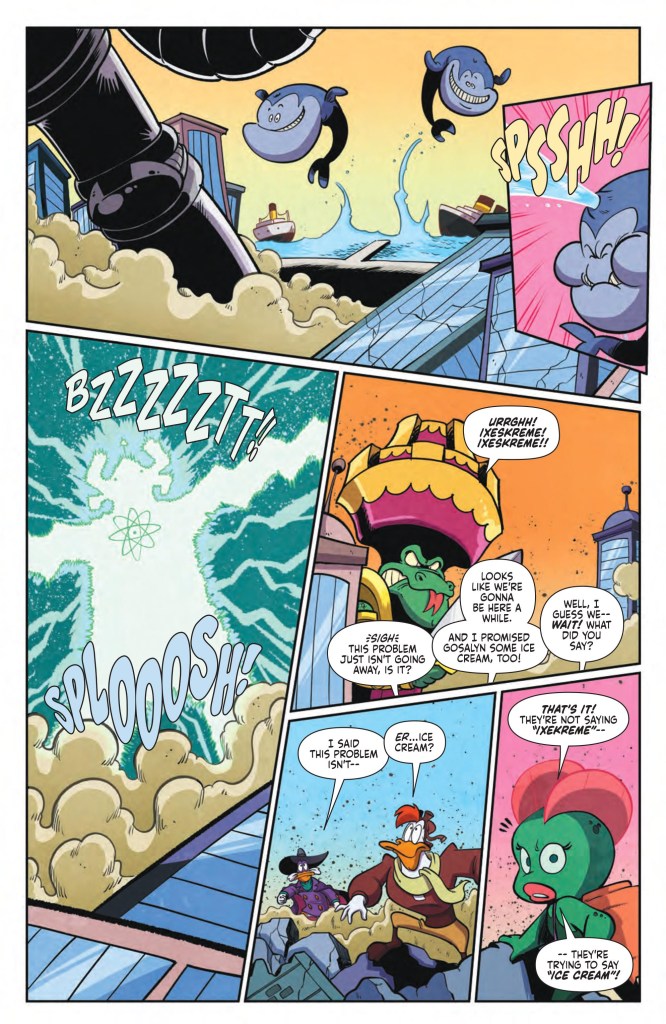 I loved Roger’s Muppet Show comic, and I recall he also did good work with Popeye, AND I’ve heard he’s a big Carlo Barks fan, so maybe he could fit right in with Darkwing Duck. And from these scans, it does look like Carlo has vastly improved from the traced stock art that plagued the first two issues of the series. But I still don’t think I can support this version of Darkwing, because I refuse to let Disney believe they made the right choice in firing Aaron Sparrow and James Silvani.