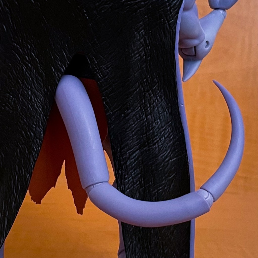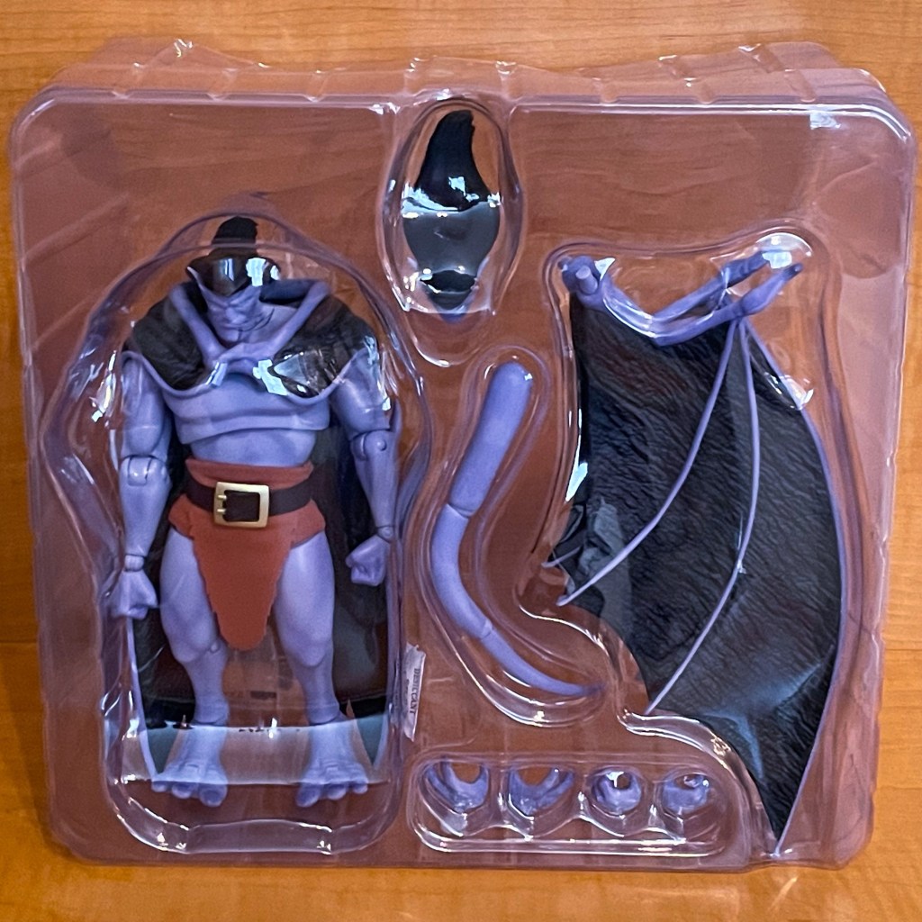 One of the major pain points with the NECA Gargoyles Ultimates figures initial release of their Goliath figure was that it only came with the large extended wings which made it hard to fit into displays. A wing cloak for Goliath were later included with the NECA Bronx figure. This Beast Kingdom release comes with both the extended wings and the casual wing cloak look.
