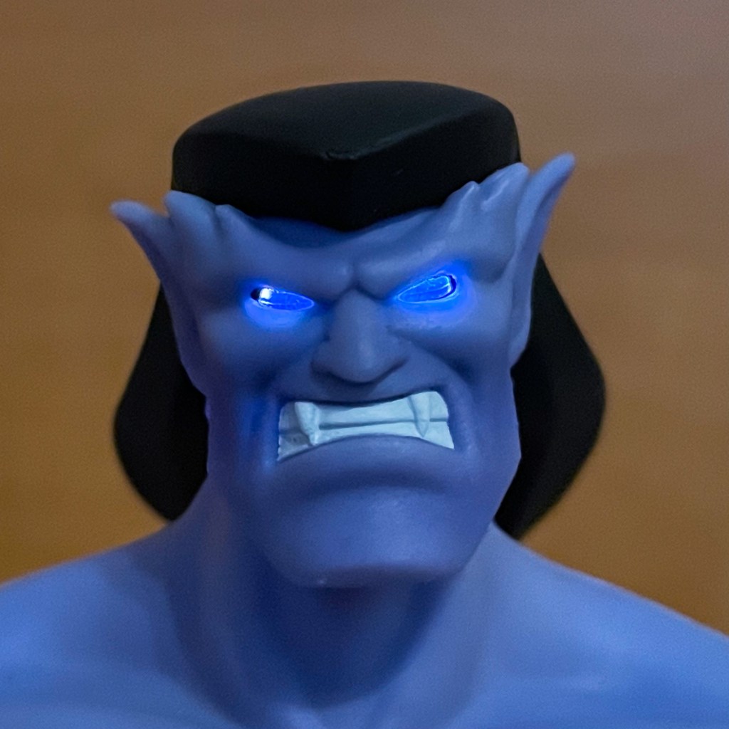 Beast Kingdom’s Gargoyles Goliath Dynamic 8ction Heroes 1/9 scale figure measures at approximately 8.27 inches tall and features an impressive 26 points of articulation. His eyes have an LED light feature that gets it power from three LR-41 batteries. Unfortunately, the batteries are not included in the box.