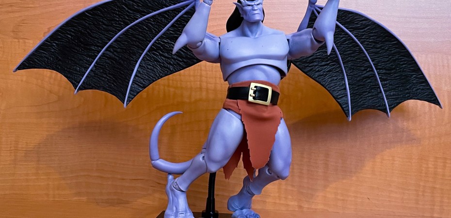 Beast Kingdom’s standard nameplate base which features the character’s name and Gargoyles animated show logo is included in this release. There is an extended arm to encourage you to use for posing.