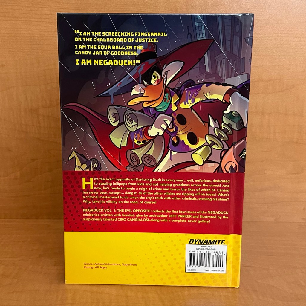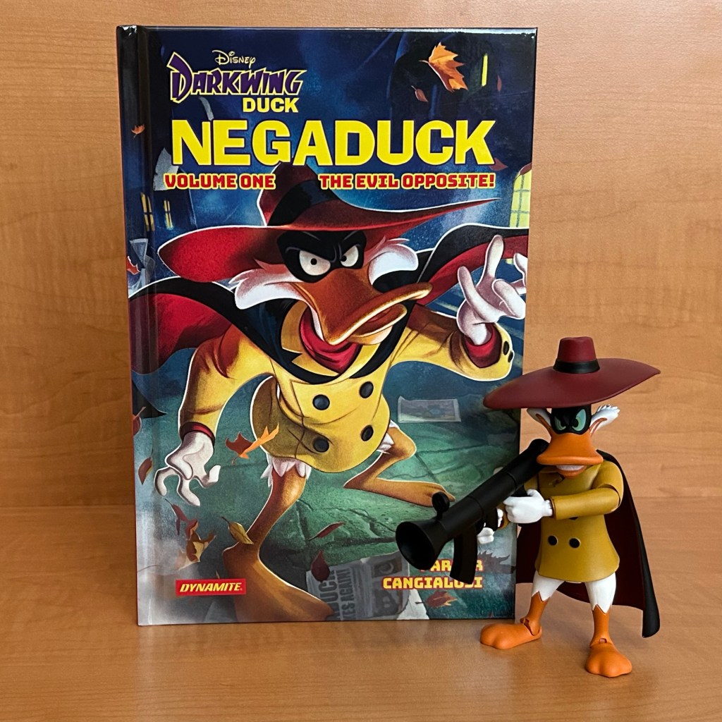 An oversized collector’s edition titled Heroes and Villains which collects the entire eight issue Negaduck series as well as the entire five issue Justice Ducks series was available in Dynamite Comics’ Darkwing Duck Kickstarter. That collector’s edition came in paperback, hardcover, and hardcover signature editions signed by Jeff Parker.